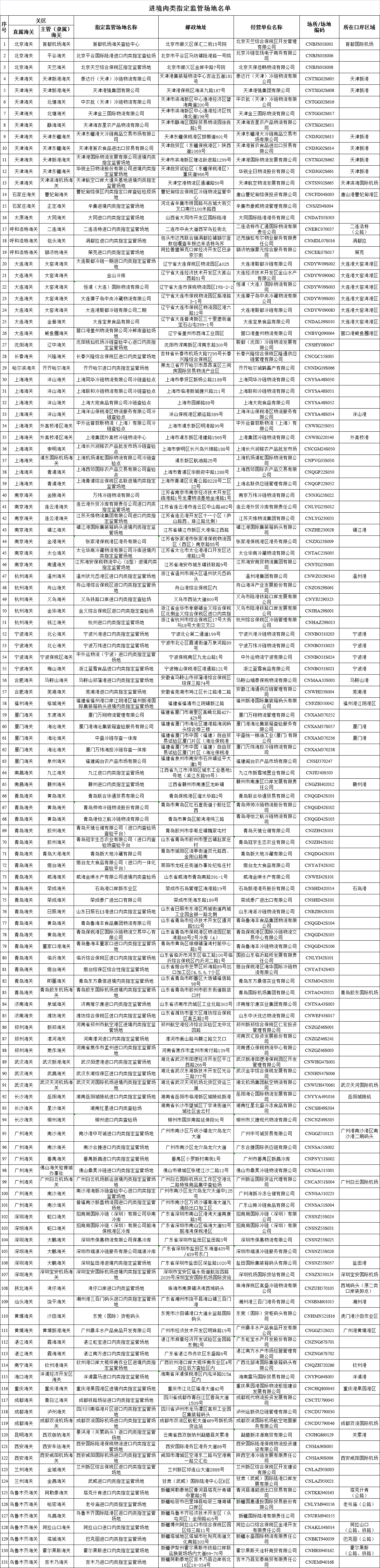海关总署 | 《进境肉类指定监管场地名单》(2022.6.24)