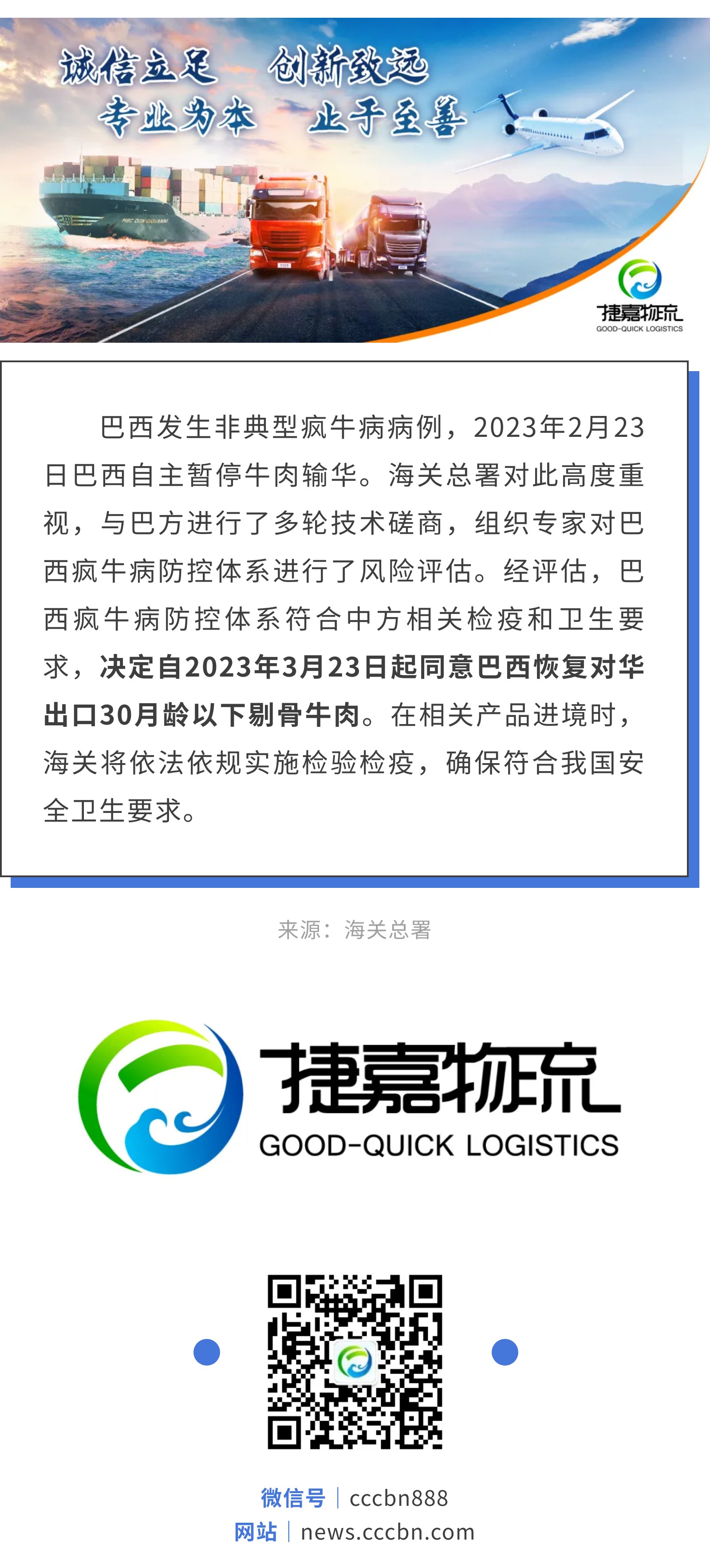 捷嘉关注 | 海关总署:中方同意巴西牛肉恢复输华