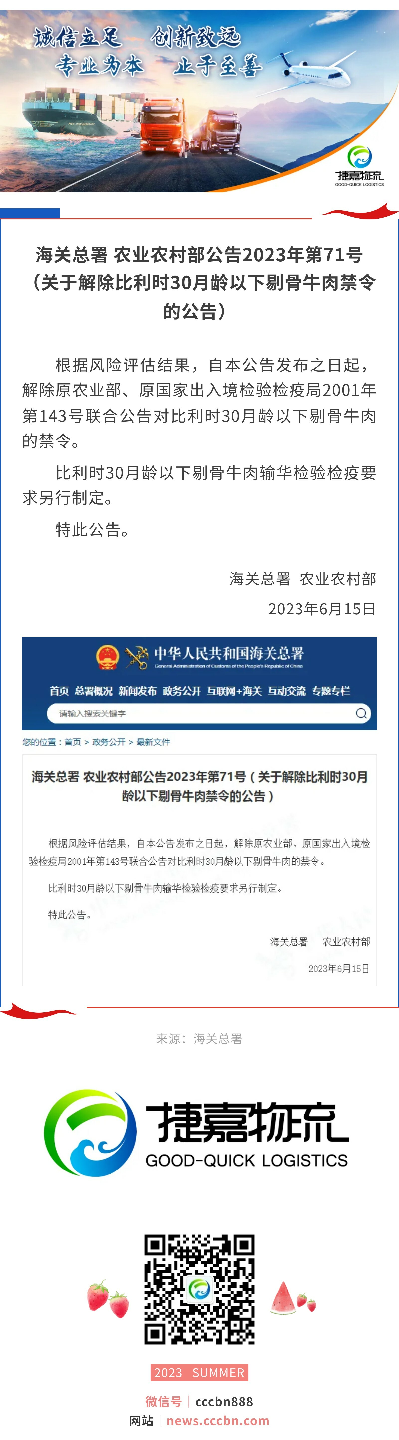 捷嘉关注 | 海关总署、农业农村部:关于解除比利时30月龄以下剔骨牛肉禁令的公告