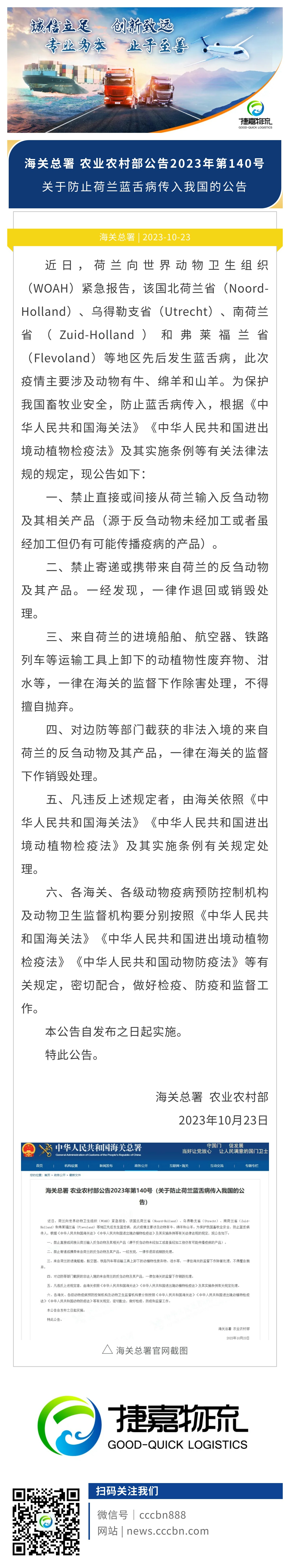 捷嘉关注 | 海关总署 农业农村部:关于防止荷兰蓝舌病传入我国的公告