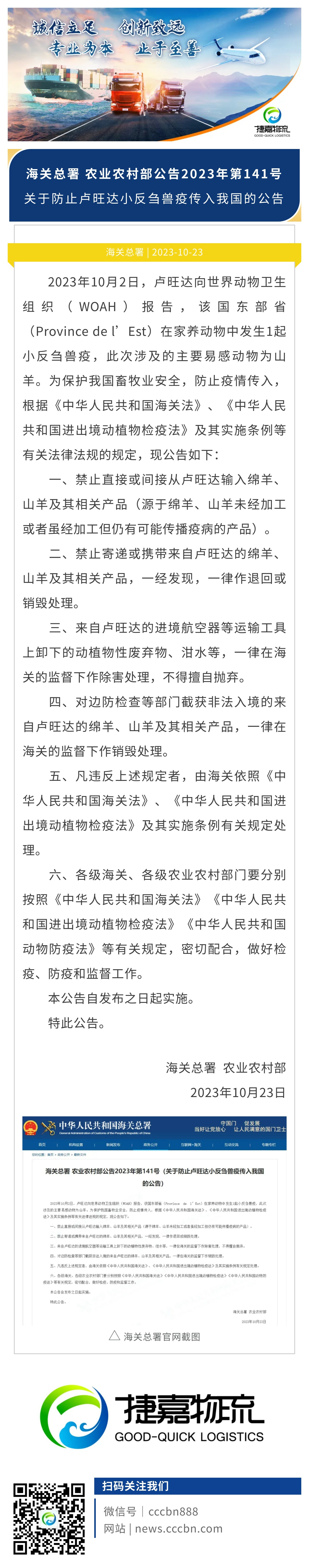 捷嘉 · 快讯 | 海关总署 农业农村部:关于防止卢旺达小反刍兽疫传入我国的公告
