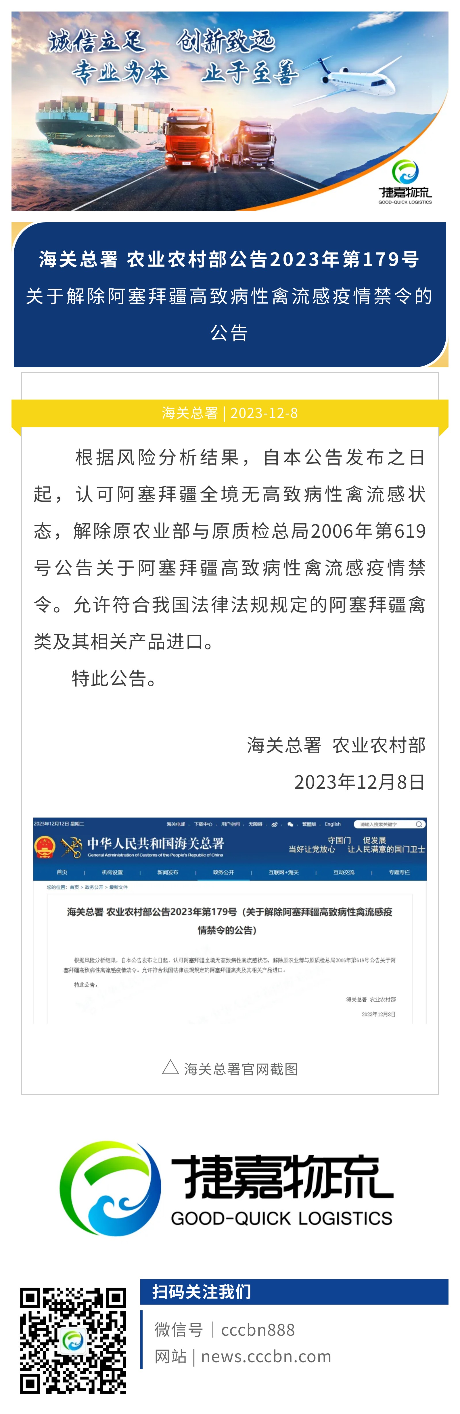 捷嘉 · 快讯 | 海关总署 农业农村部:关于解除阿塞拜疆高致病性禽流感疫情禁令的公告