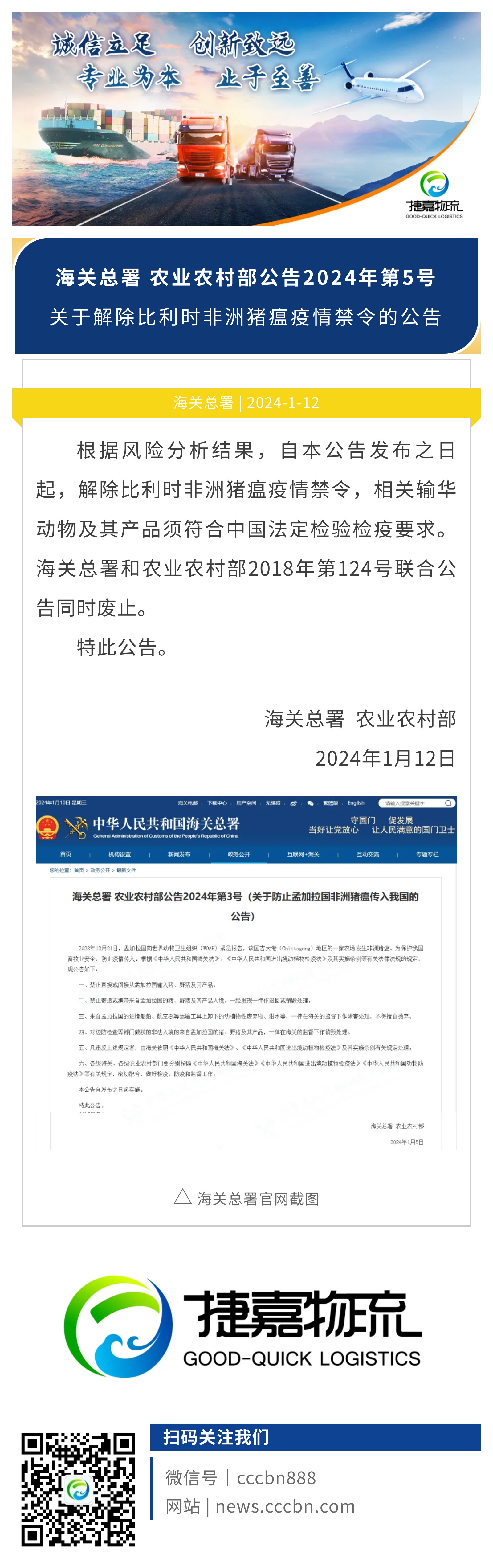捷嘉 · 快讯 | 海关总署 农业农村部:关于解除比利时非洲猪瘟疫情禁令的公告