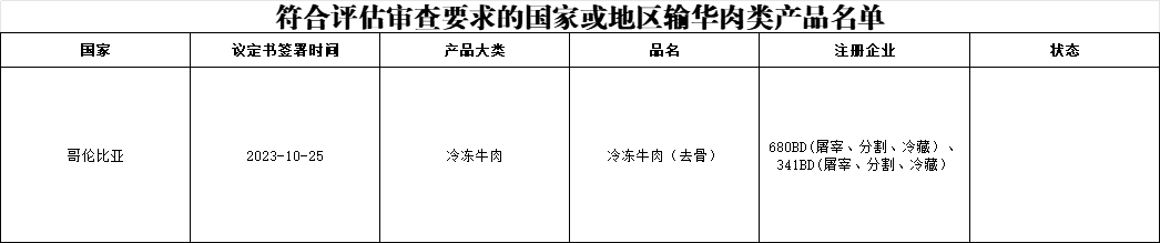 近日,海关总署更新《符合评估审查要求的国家或地区输华肉类产品名单》: