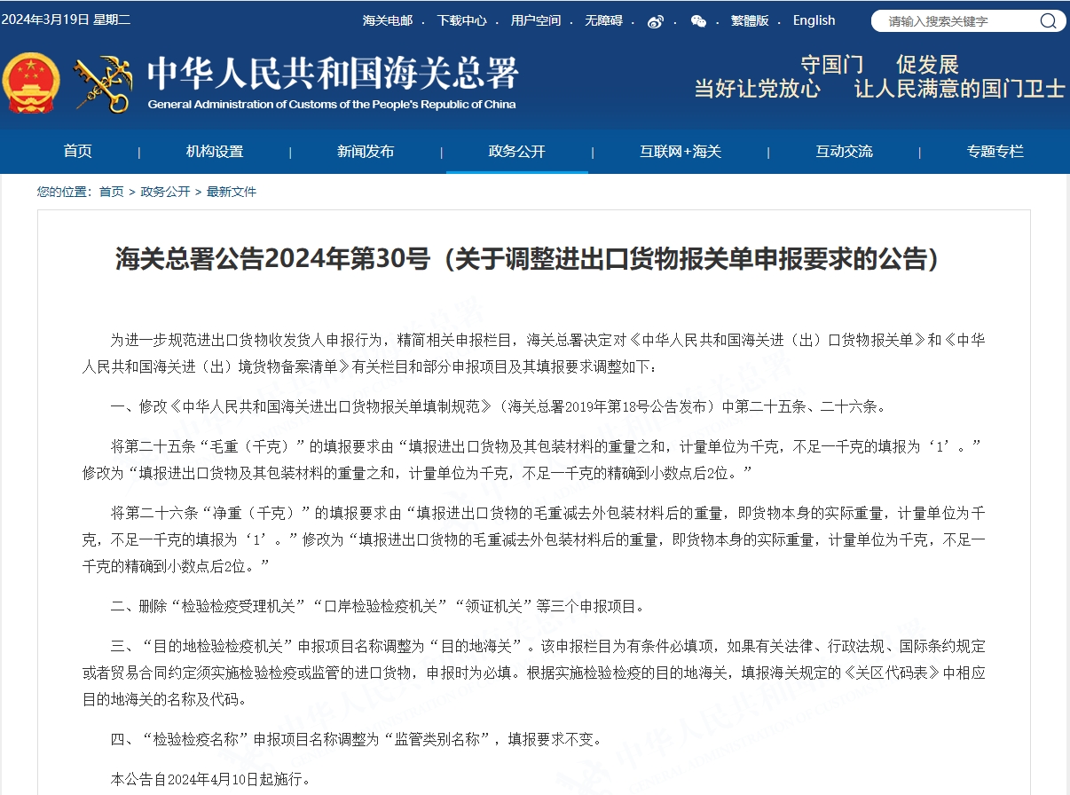 为进一步规范进出口货物收发货人申报行为,精简相关申报栏目,海关总署决定对《中华人民共和国海关进(出)口货物报关单》和《中华人民共和国海关进(出)境货物备案清单》有关栏目和部分申报项目及其填报要求调整如下: