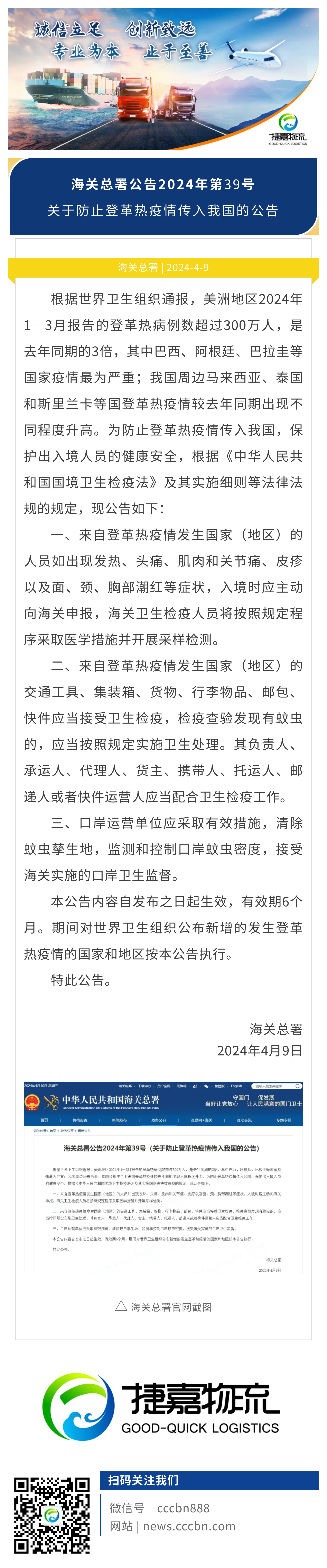 捷嘉 · 关注 | 海关总署:关于防止登革热疫情传入我国的公告