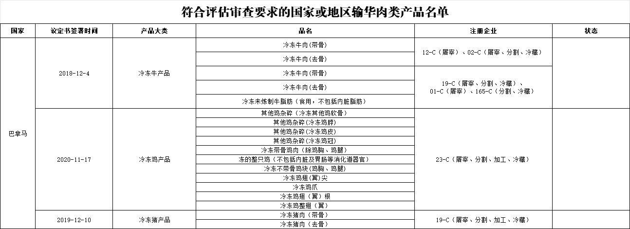 新增巴拿马1家肉类工厂进口: