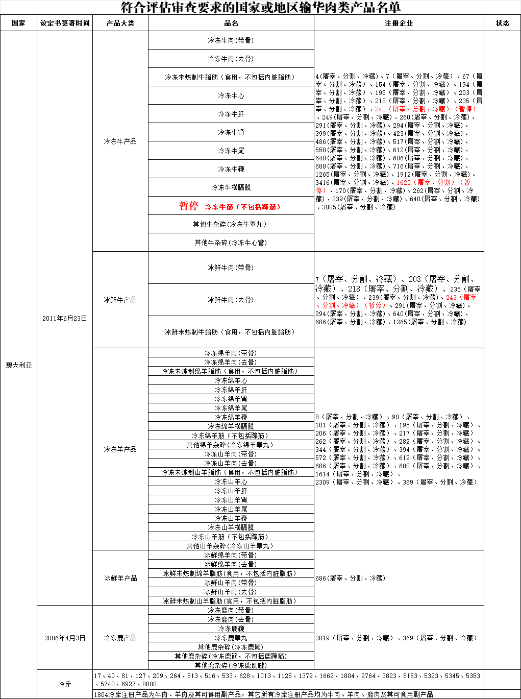 新增澳大利亚1家肉类工厂进口: