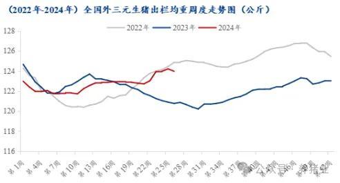 图11 2022年-2024年全国外三元生猪出栏均重周度走势图