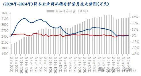 整体来看2024年规模企业商品猪存栏量比较稳定,上半年样本企业商品猪存栏775.36万头,同比去年减少43.07万头,主要原因是样本企业四季度疫病减少的损失及猪价下行通道时,养殖利润深度亏损,部分企业减少母猪存栏数量,主动去产能。