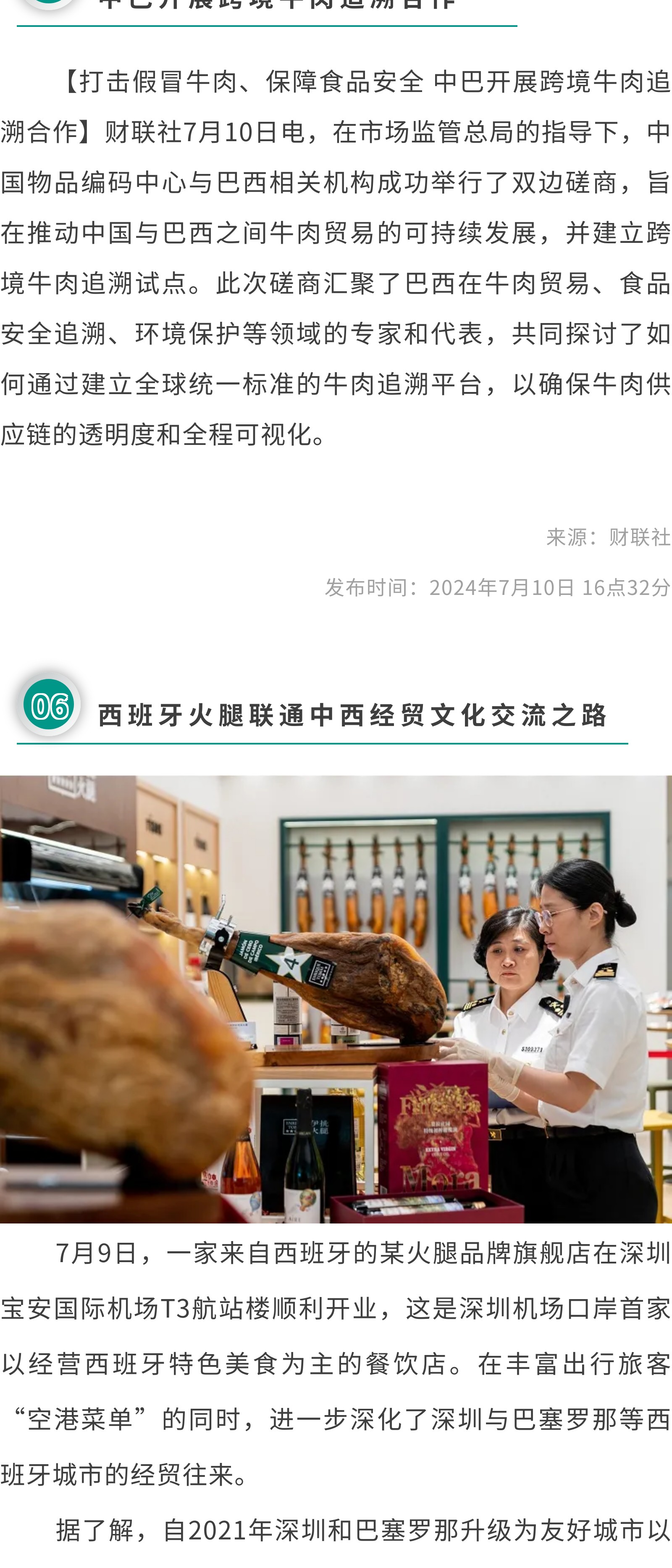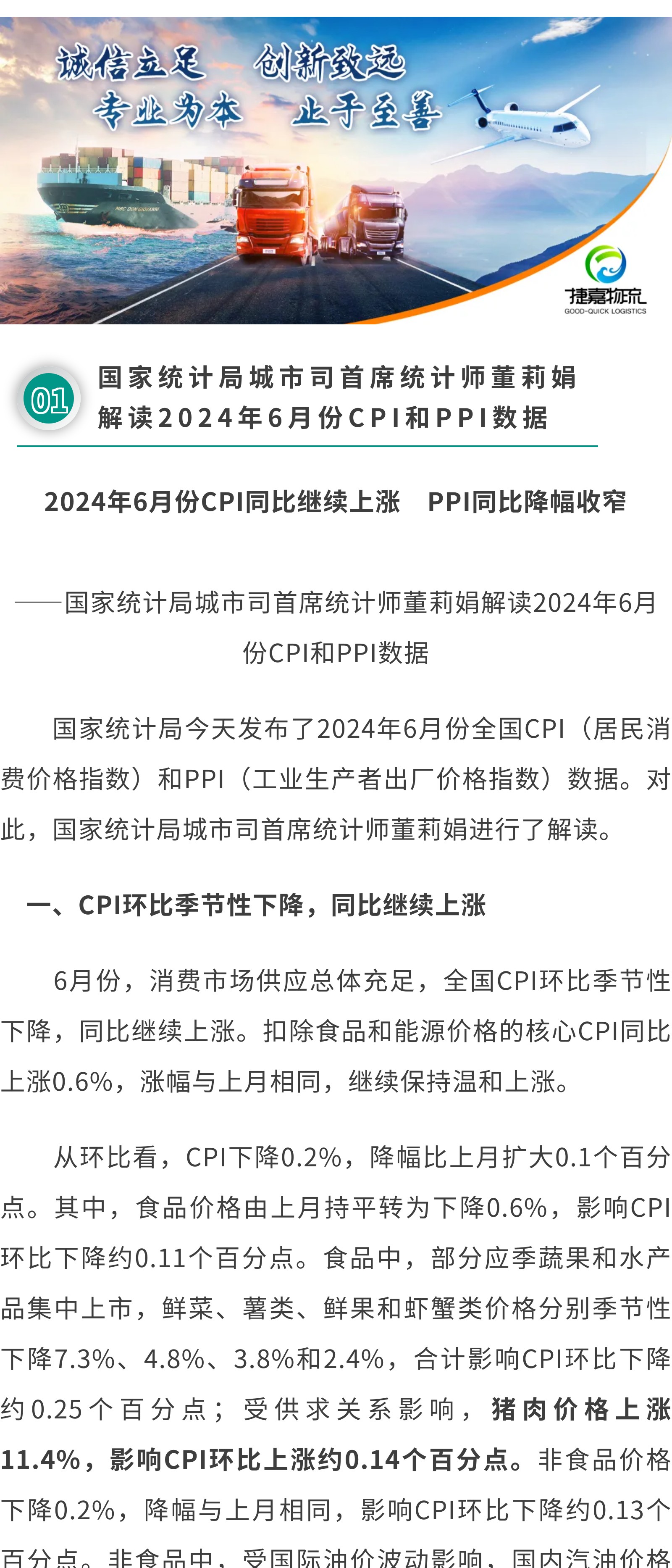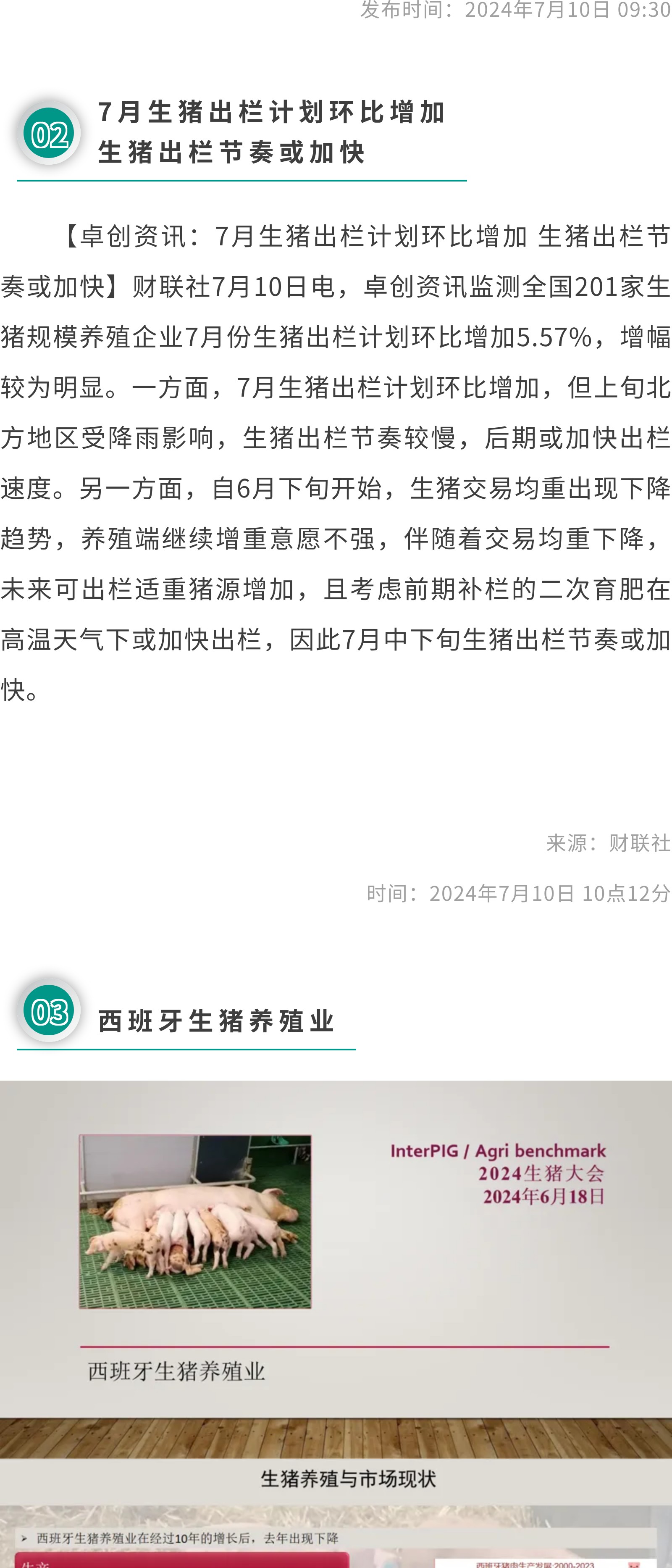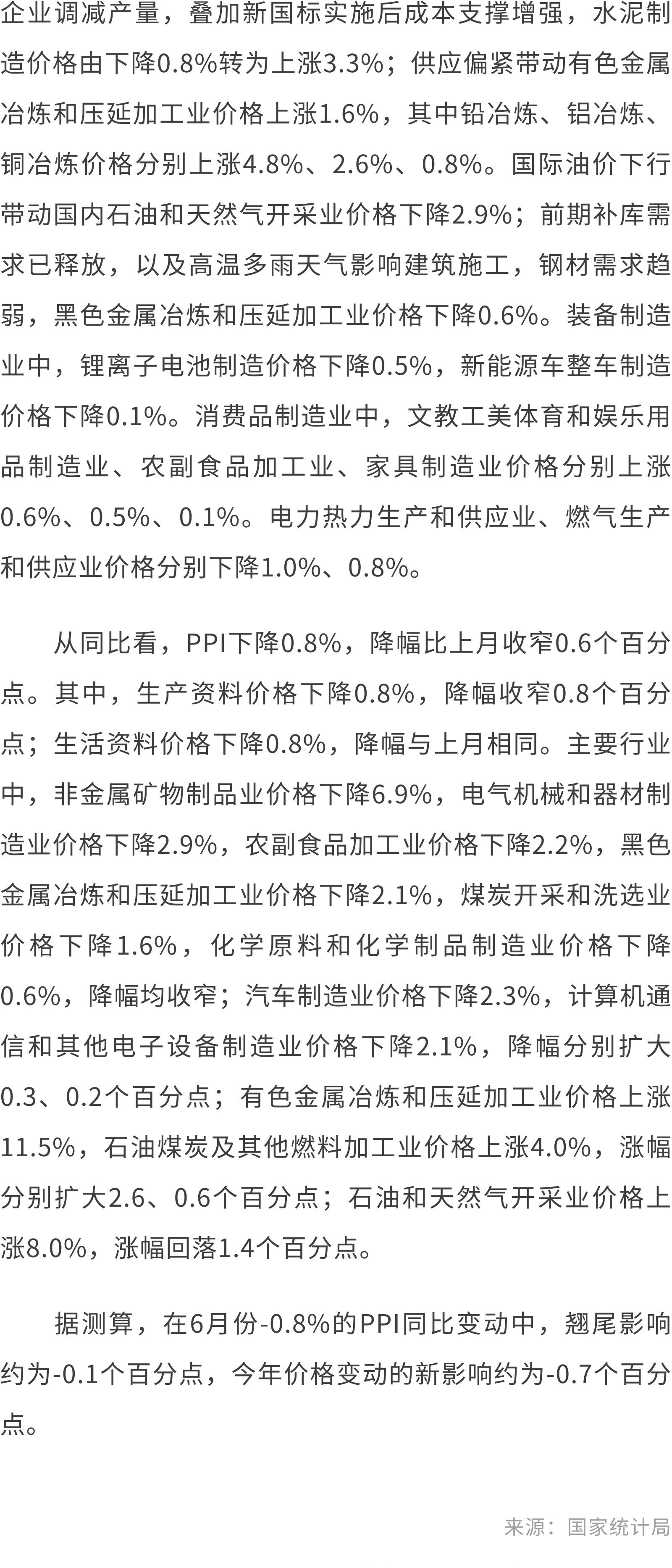 ①国家统计局:2024年6月份CPI环比下降0.2%②7月生猪出栏计划环比增加生猪出栏节奏或加快③2024年第27周瘦肉型白条猪肉出厂价格监测周报④打击假冒牛肉、保障食品安全,中巴开展跨境牛肉追溯合作
