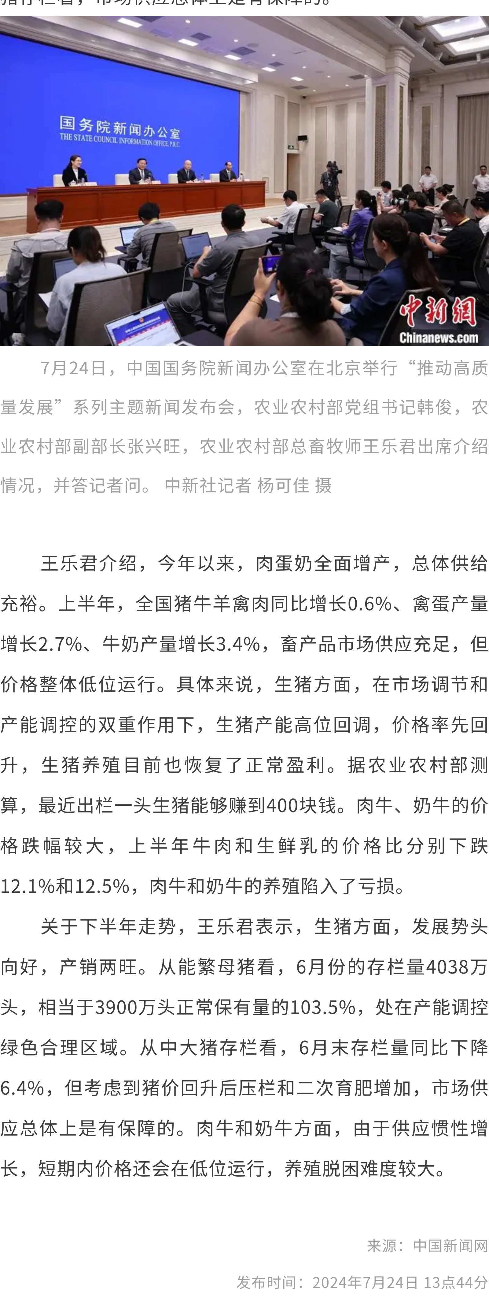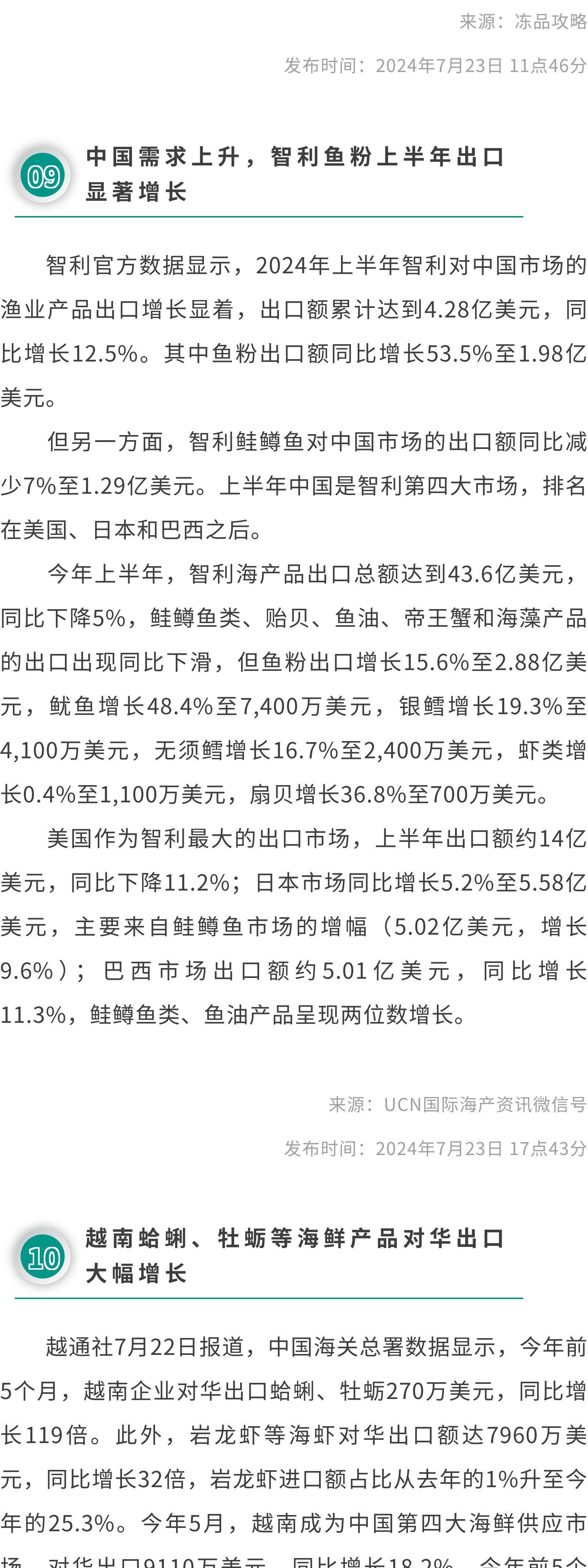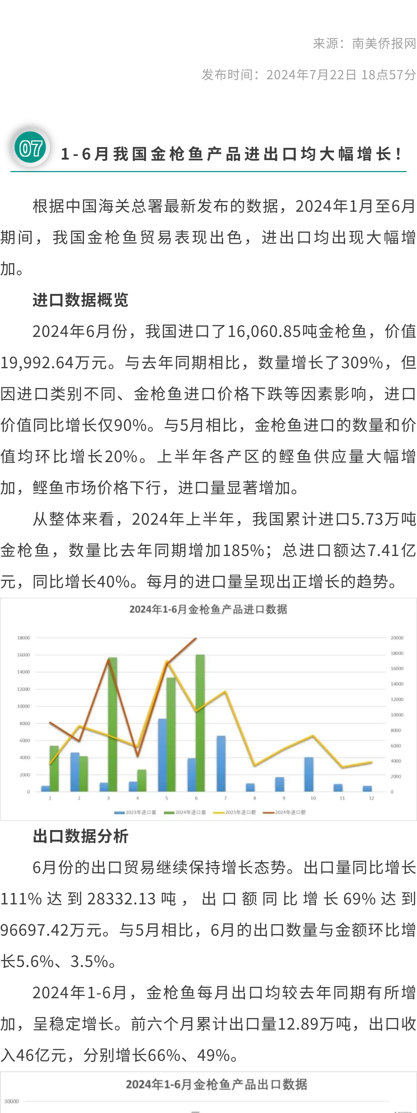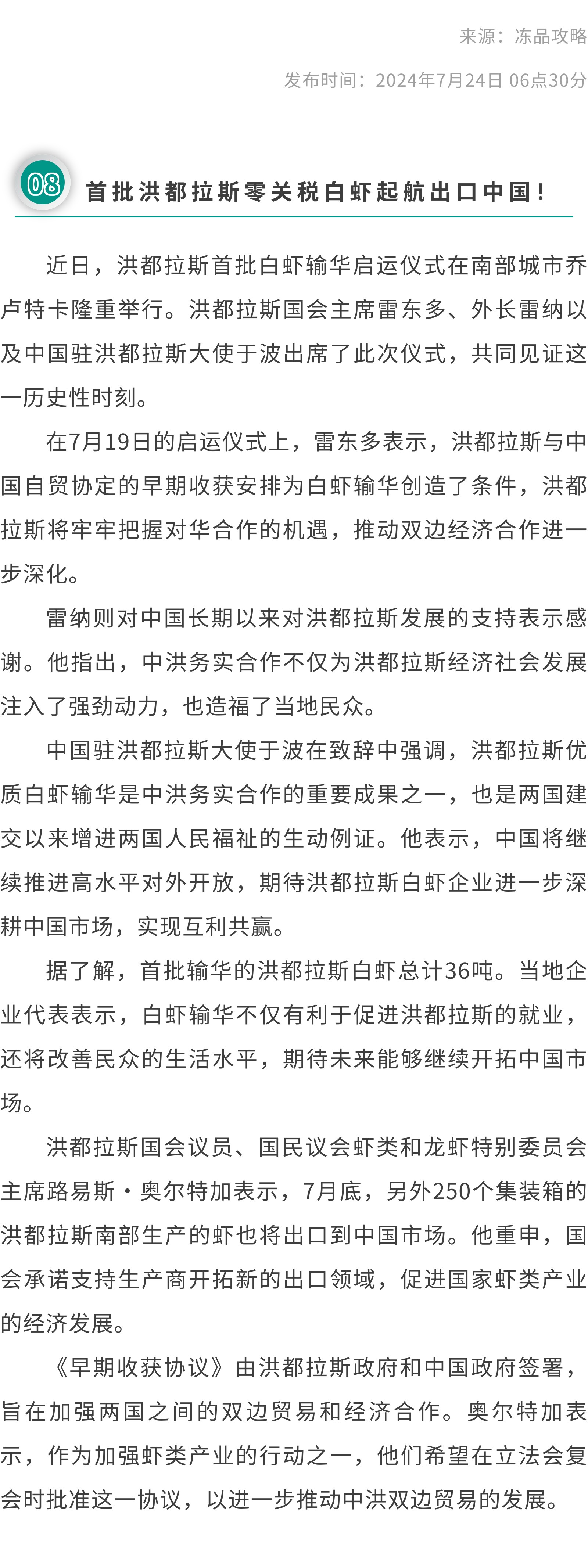 捷嘉 ·关注 | ①农业农村部:生猪产能处在绿色合理区域 市场供应有保障②近期肉牛、奶牛价格跌幅较大 短期内价格还会低位运行③1-6月我国金枪鱼产品进出口均大幅增长④首批洪都拉斯零关税白虾起航出口中国