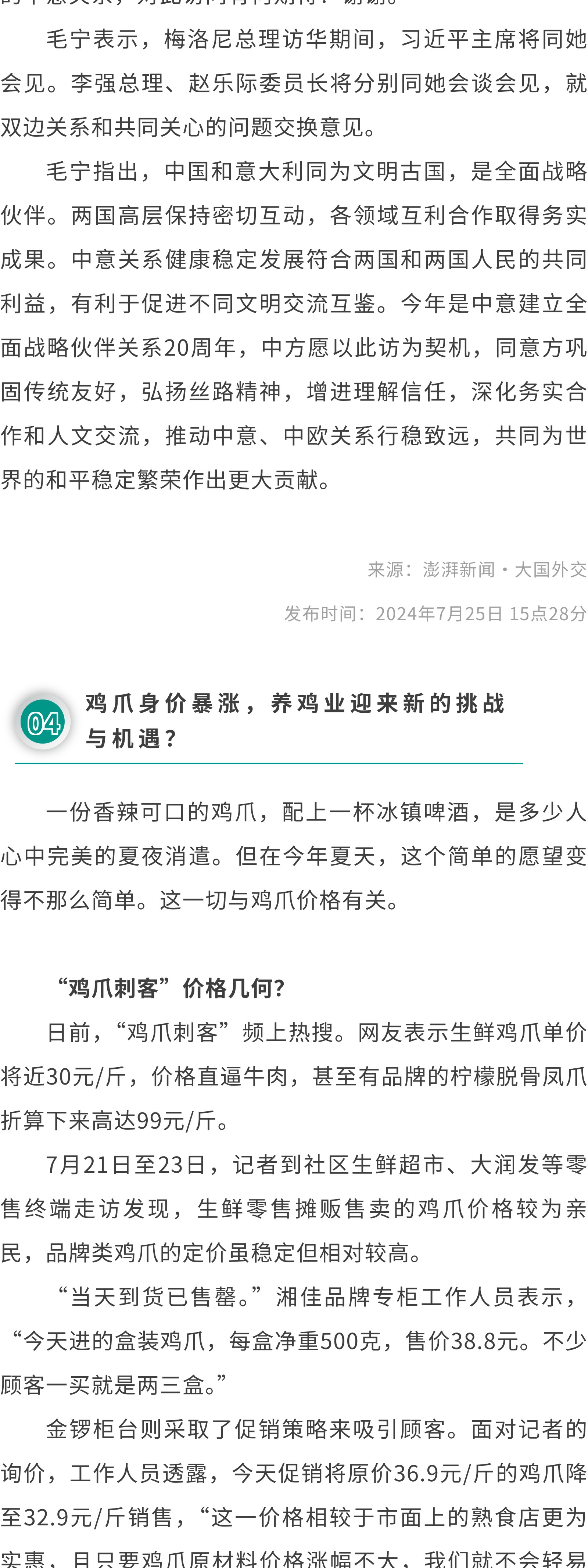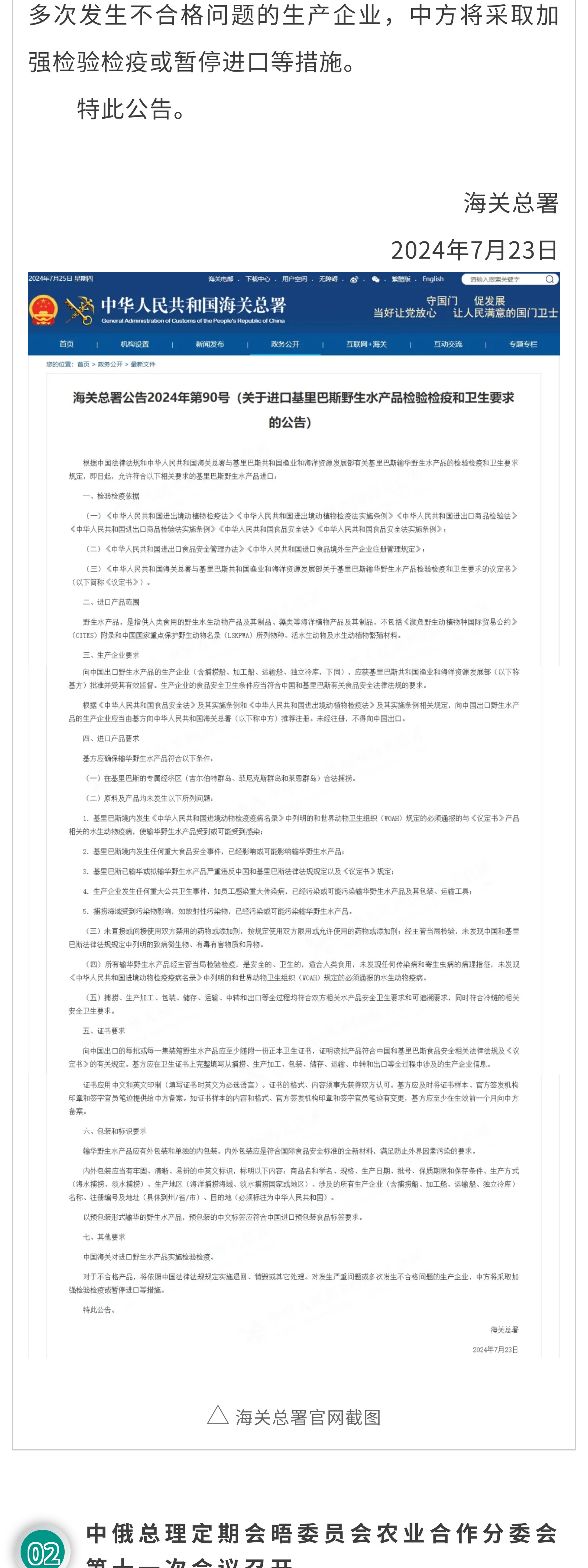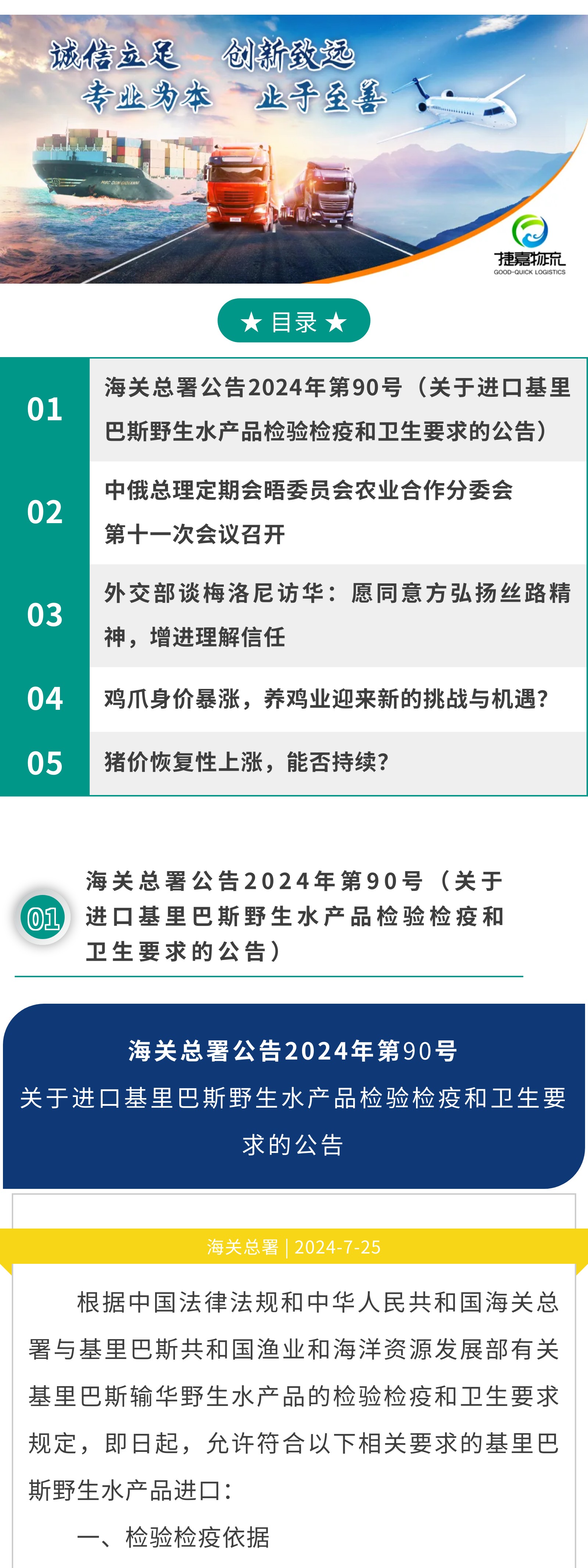 关注|①关于进口基里巴斯野生水产品检验检疫和卫生要求的公告②外交部谈梅洛尼访华:愿同意方弘扬丝路精神,增进理解信任③鸡爪身价暴涨,养鸡业迎来新的挑战与机遇?