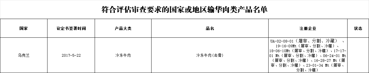 新增乌克兰1家肉类工厂进口: