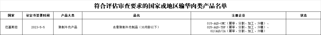 新增巴基斯坦1家肉类工厂进口: