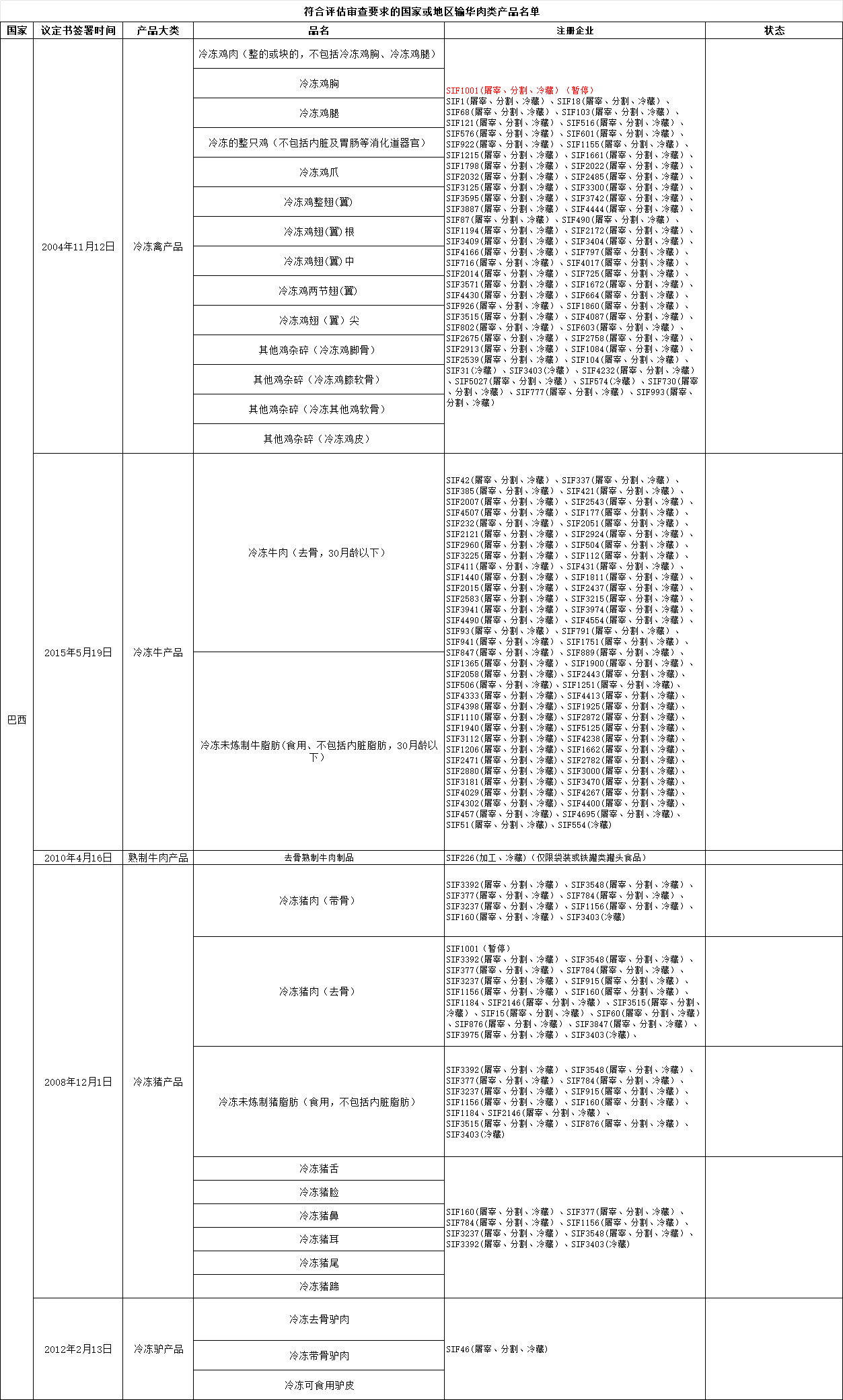 新增巴西1家肉类工厂进口: