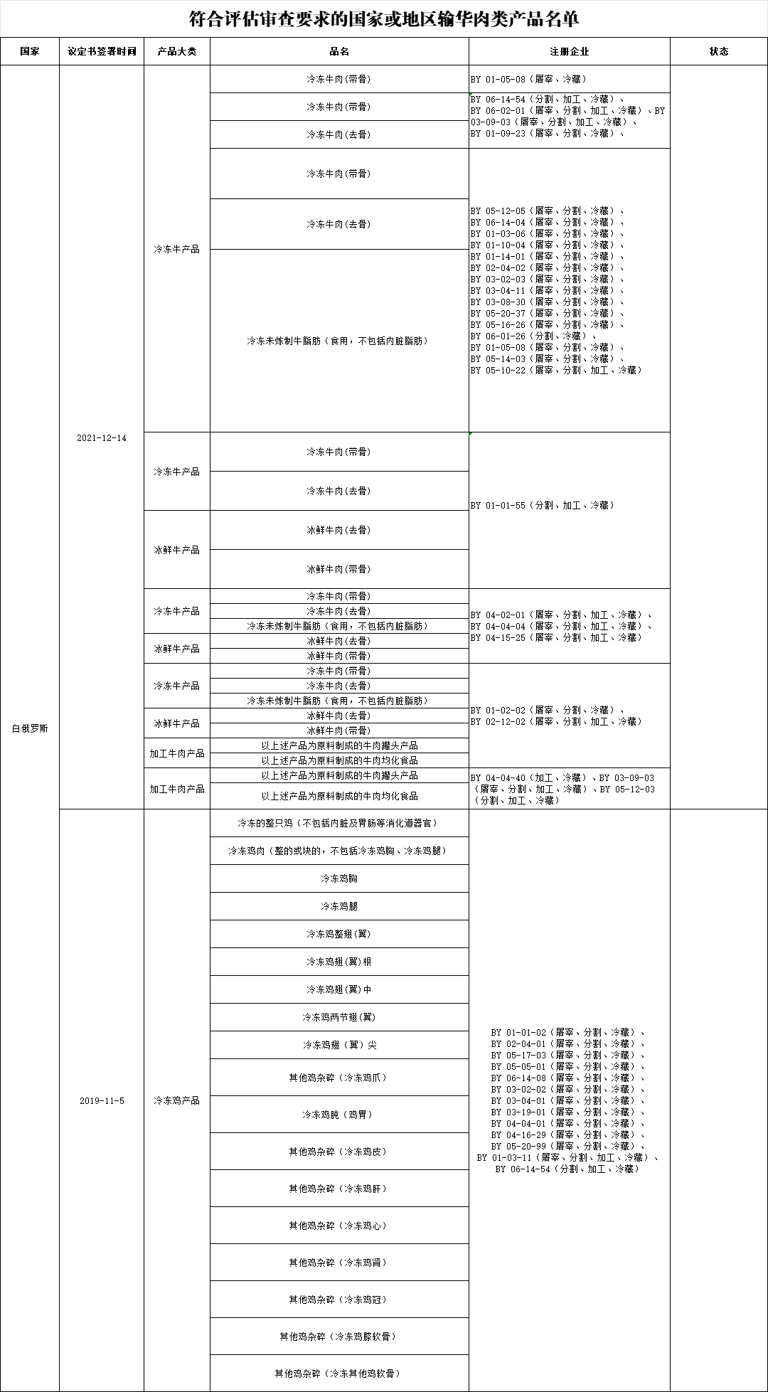 新增白俄罗斯3家肉类工厂进口: