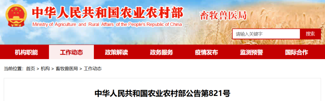农业农村部第821号公告:
