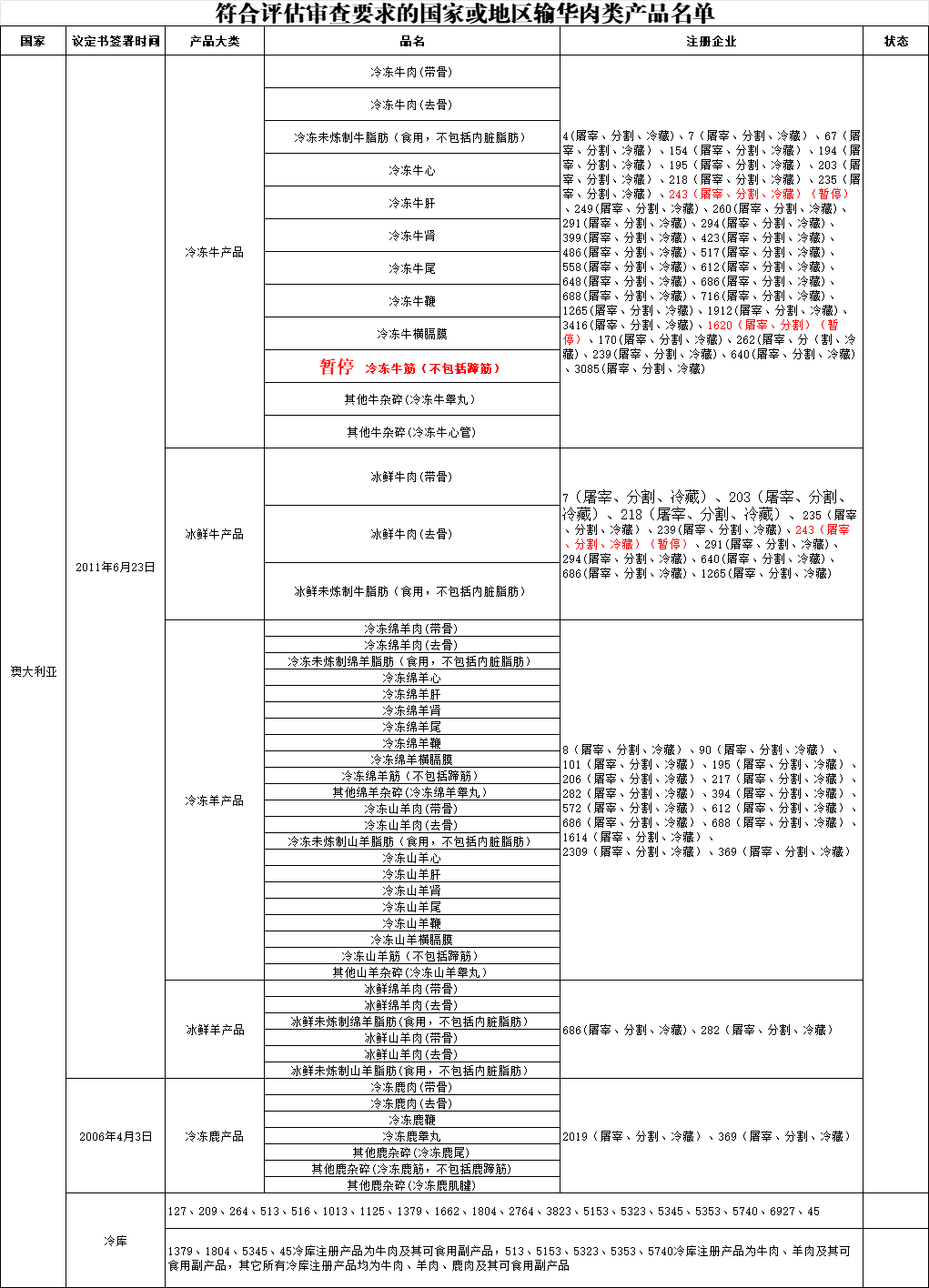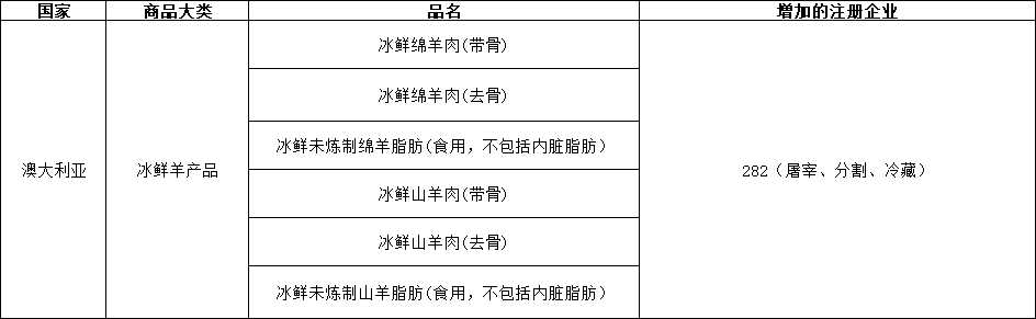如下图,新增澳大利亚一个冰鲜羊产品企业输华: