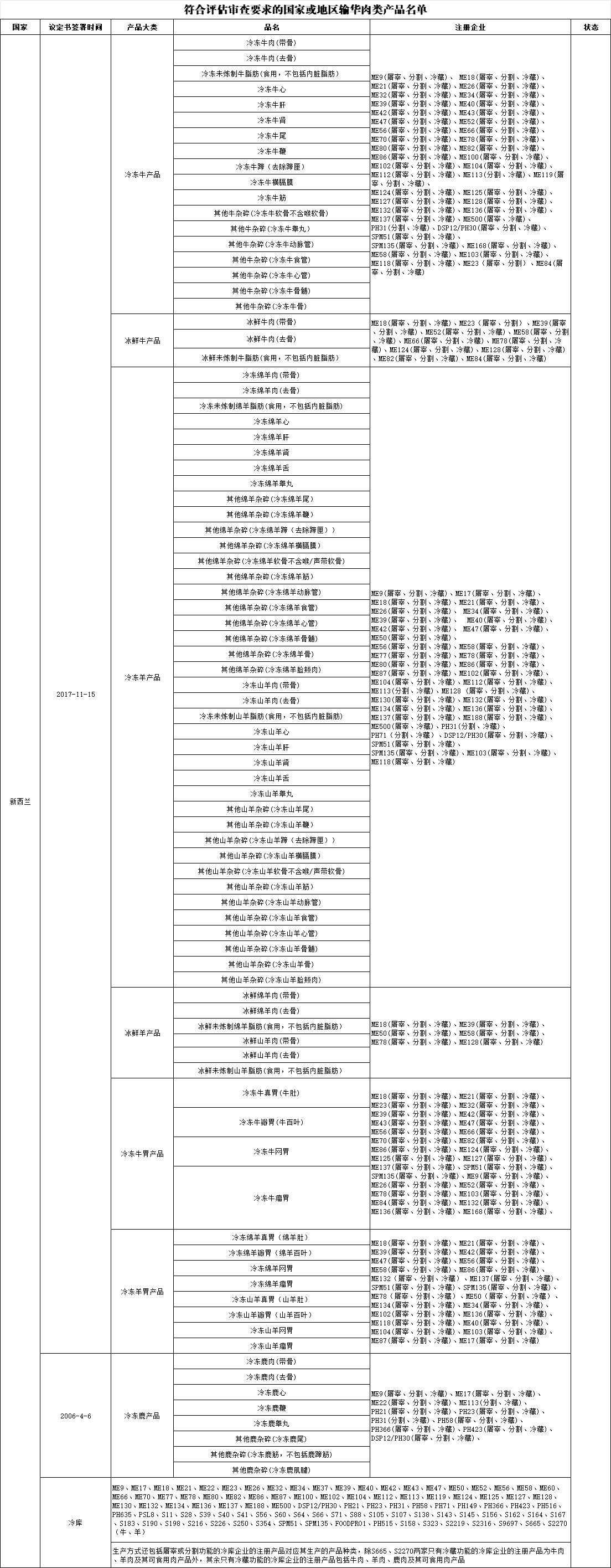 如下图,新增了部分新西兰冷冻牛胃产品和冷冻羊胃产品企业输华: