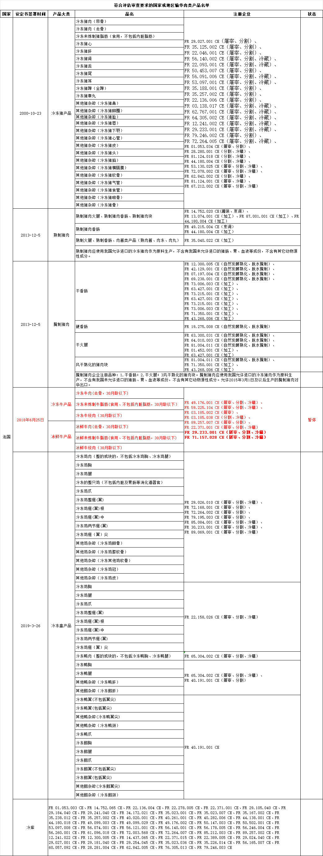 暂停法国多家肉企产品输华
