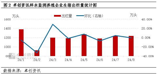 卓创资讯监测全国196家样本养殖企业生猪出栏量由6月份的1183万头增至8月份的1240万头,增幅4.82%。9月份养殖企业生猪出栏计划继续增多,且考虑9月份二次育肥补栏量减少,对标猪截留效果减弱。放养公司在4-6月份集中补栏仔猪,按照生猪生长周期推算,4月份补栏的仔猪将在9月份进入出栏周期,同时前期集中补栏的二次育肥将在中秋前后陆续出栏,9月份生猪实际供应增加,从而利空9月份猪价。
