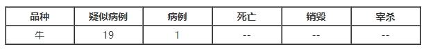 疫情于2024年9月12日得到确认,源头为通过介体传播。经临床与实验室检测发现,具体发病情况如下: