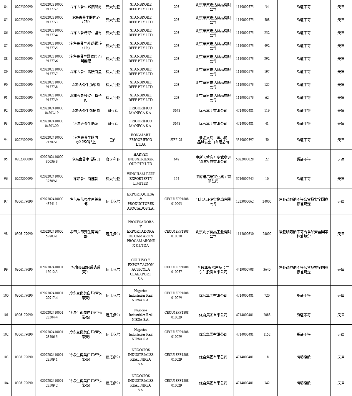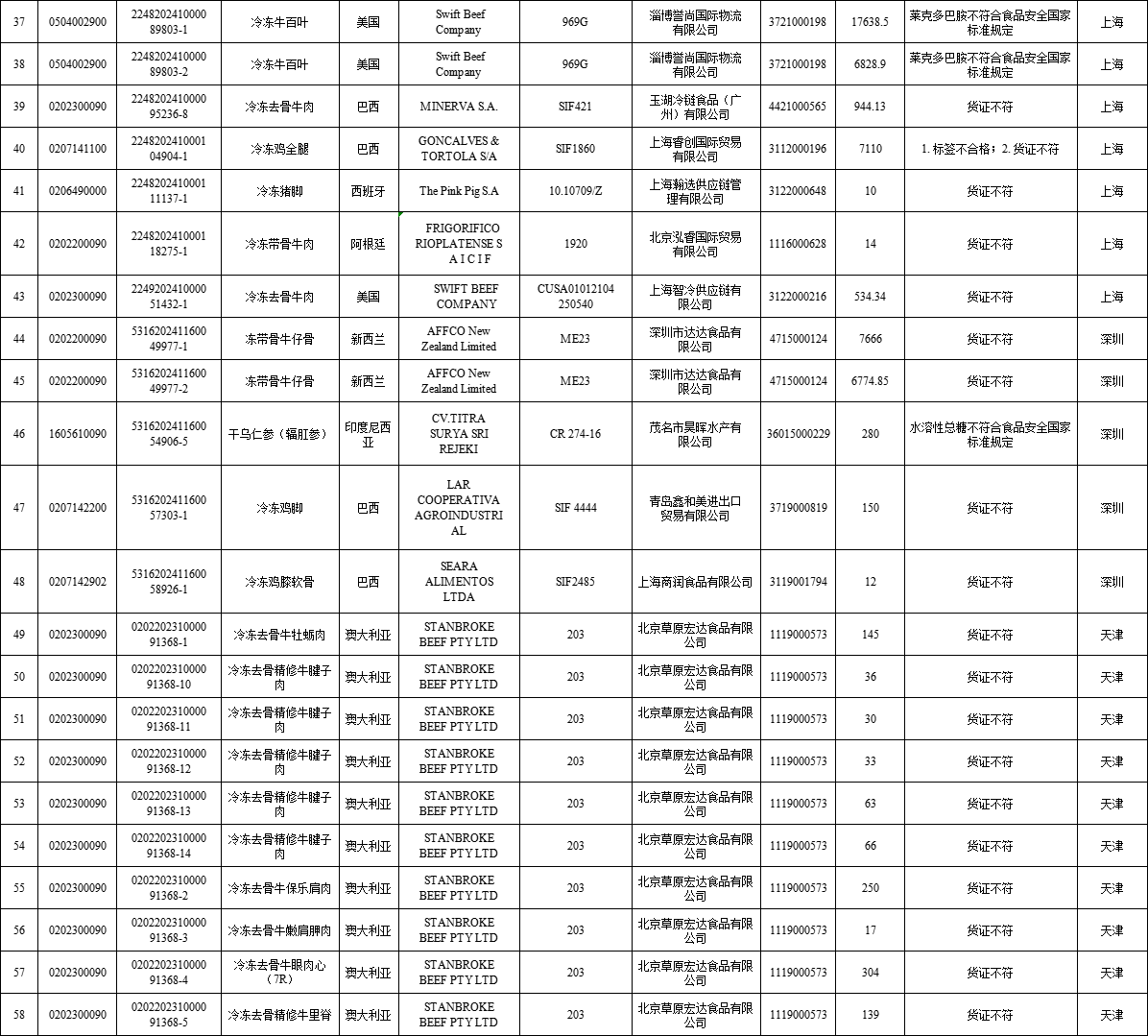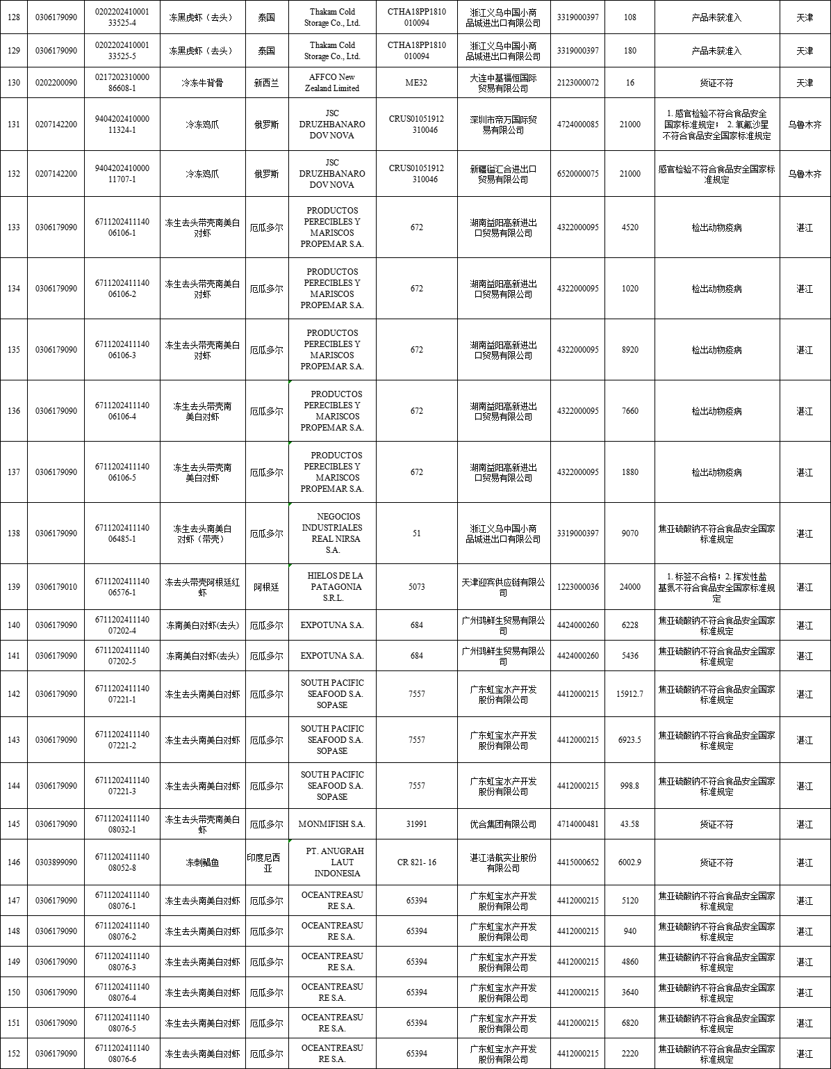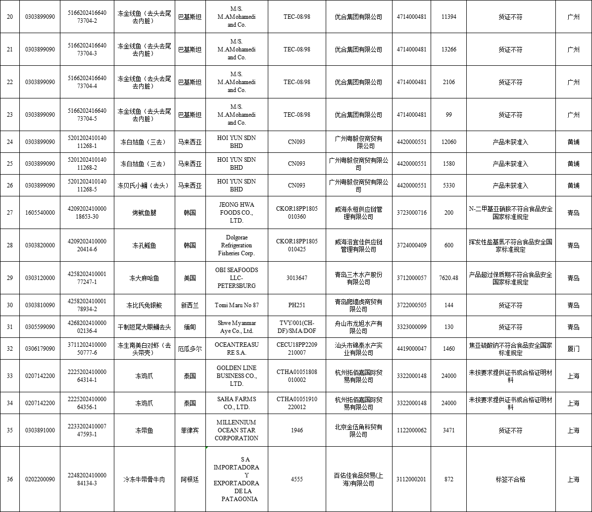 04 | 2024年8月全国未准入境猪、牛、羊、禽、水产品信息 |