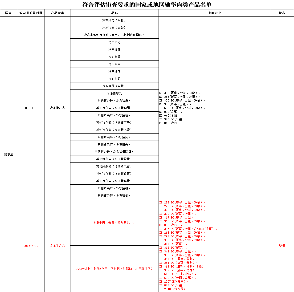 暂停爱尔兰多家牛肉企业输华: