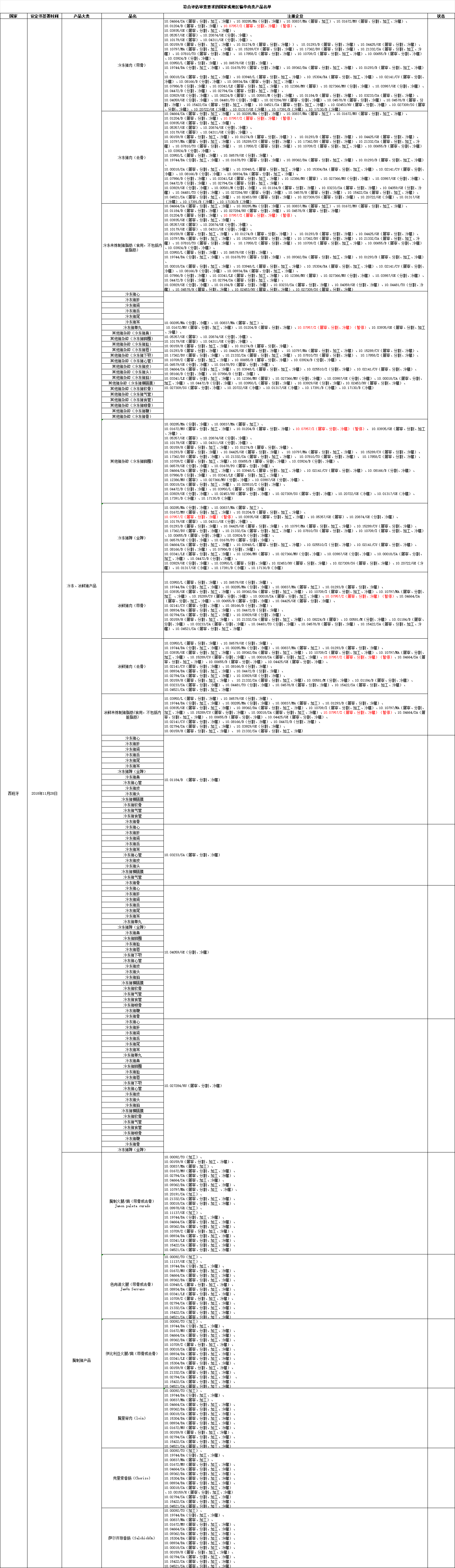 近日,海关总署更新《符合评估审查要求的国家或地区输华肉类产品名单》: