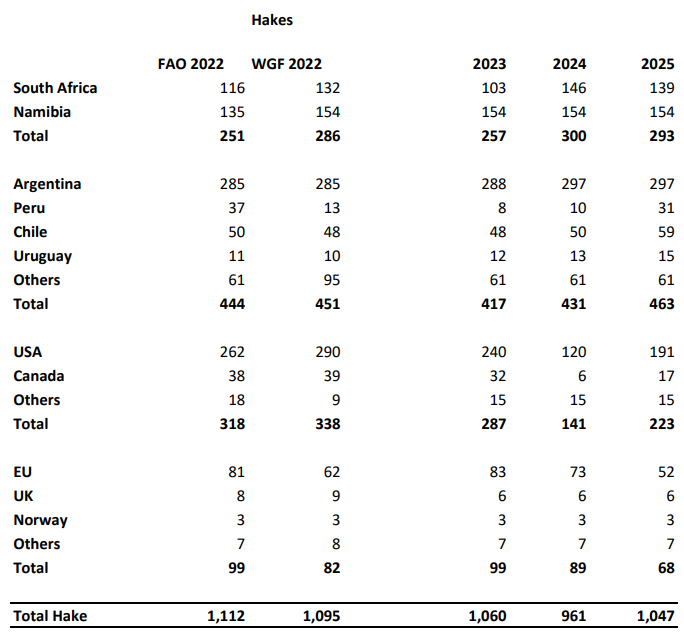 实际上,南非和纳米比亚的开普无须鳕预计将同比下降,从30万吨降至29.3万吨。然而,论坛指出,阿根廷的产量预计将保持在29.7万吨,秘鲁则有望从今年的1万吨恢复至3.1万吨;尤其是美国,预计无须鳕的捕捞量将从今年极低的12万吨大幅回升至19.1万吨。