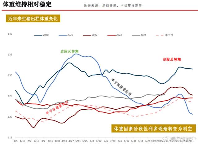与之对应的是,生猪出栏体重并未像2020-2023年一样,在10月前后出现快速攀升,证明压栏大猪的供应压力并不大。