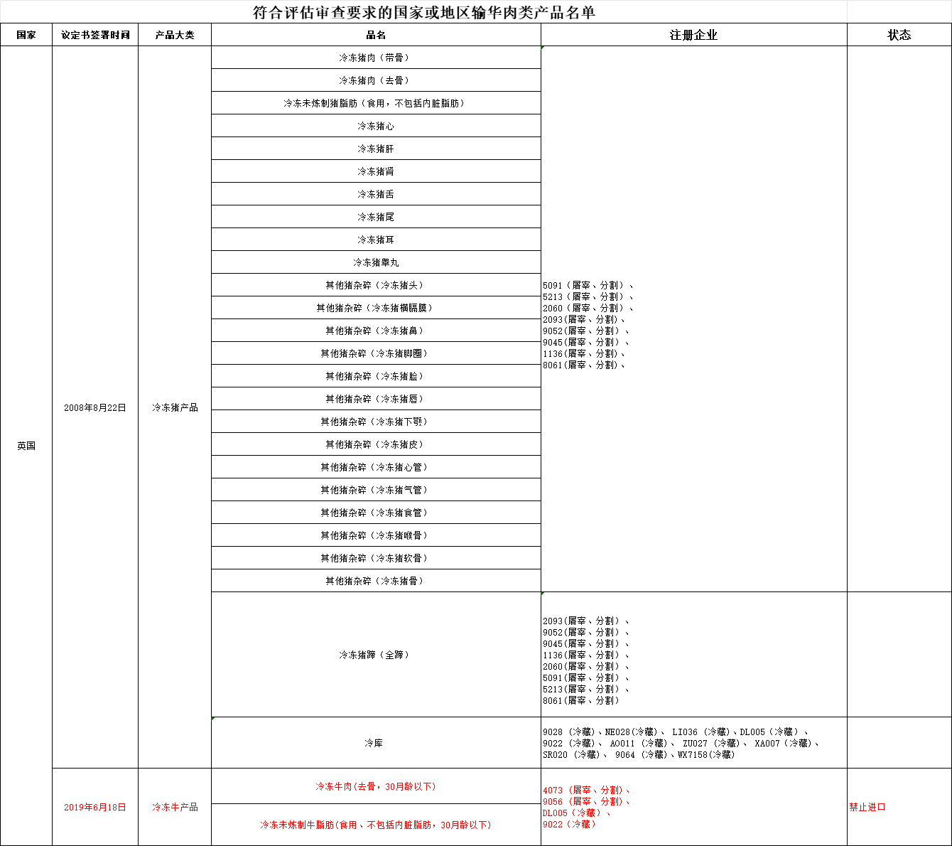 恢复英国注册编号为1136、5213的企业自2024年12月3日及之后生产的符合中国要求的肉类产品对华出口。