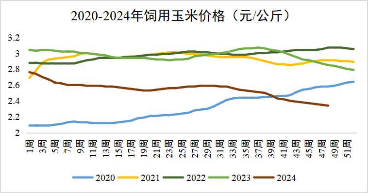 玉米价格继续下跌:全国玉米平均价格2.34元/公斤,环比下跌0.4%,同比下跌17.9%。主产区东北三省玉米价格为2.16元/公斤,与前一周持平;主销区广东省玉米价格2.51元/公斤,环比下跌1.2%。