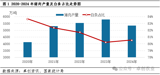 1.白条占猪肉总产量的比重逐年下滑