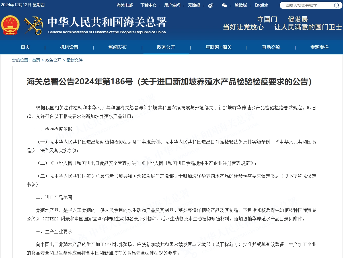 捷嘉 · 关注 | 海关总署:关于进口新加坡养殖水产品检验检疫要求的公告