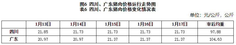 五、四川地区和广东地区猪肉价格均环比下跌、同比涨幅收窄