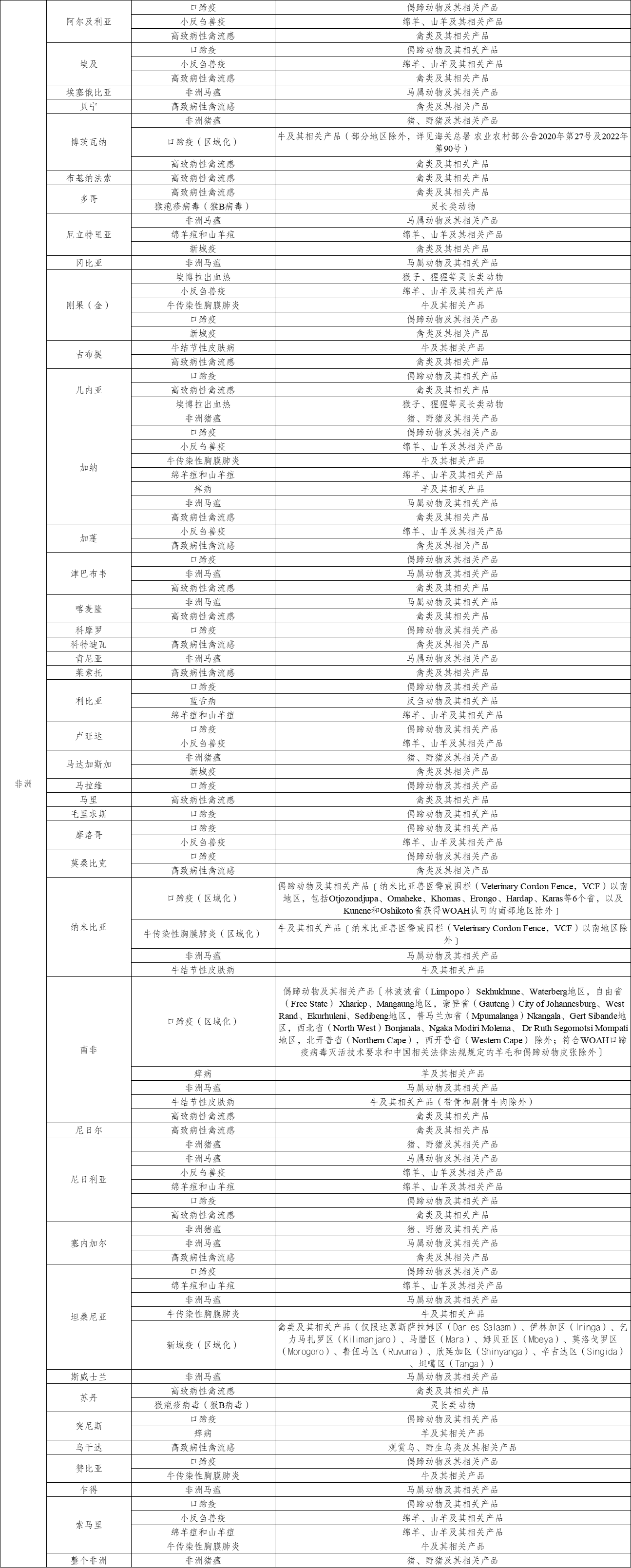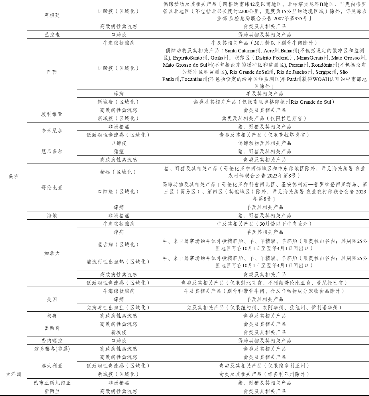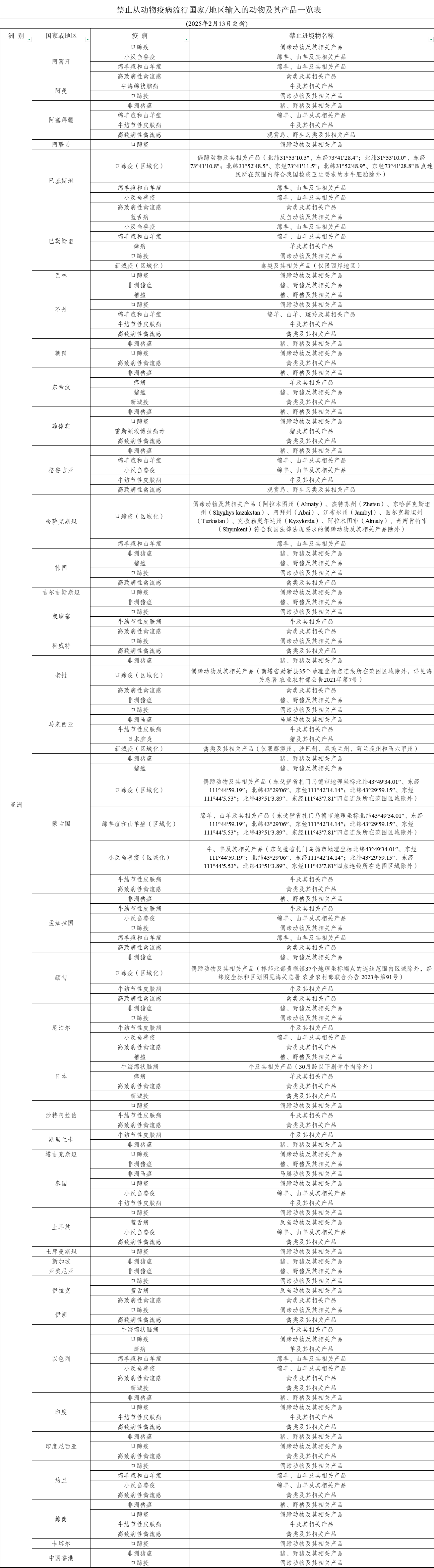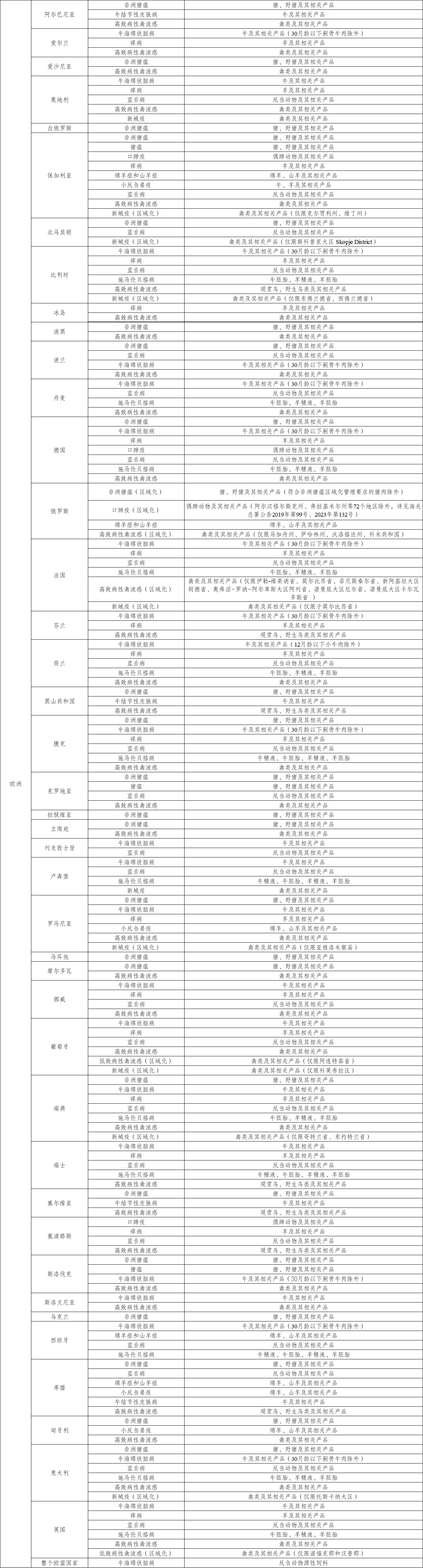 禁止从动物疫病流行国家地区输入的动物及其产品一览表