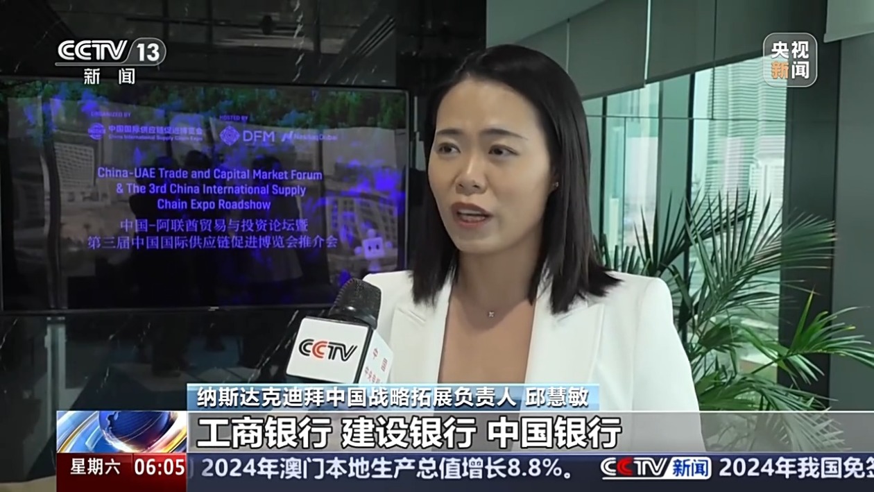 纳斯达克迪拜中国战略拓展负责人 邱慧敏:目前,纳斯达克迪拜共有130亿美元的债券来自中资债券发行人,涵盖21笔发行,其中包括中国四大国有银行——工商银行、建设银行、中国银行和农业银行的债券。与此同时,我们与深圳证券交易所和上海证券交易所签署了合作备忘录。这些举措也进一步促进了中阿金融市场的联动。