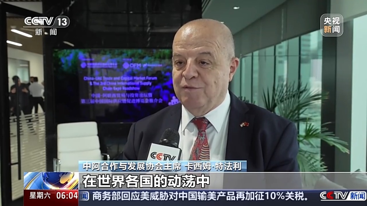 中阿合作与发展协会主席 卡西姆·特法利:在世界各国的动荡中,中国的经济还在继续发展,我相信随着中国实行更多的开放政策,世界的发展机会将会更多。