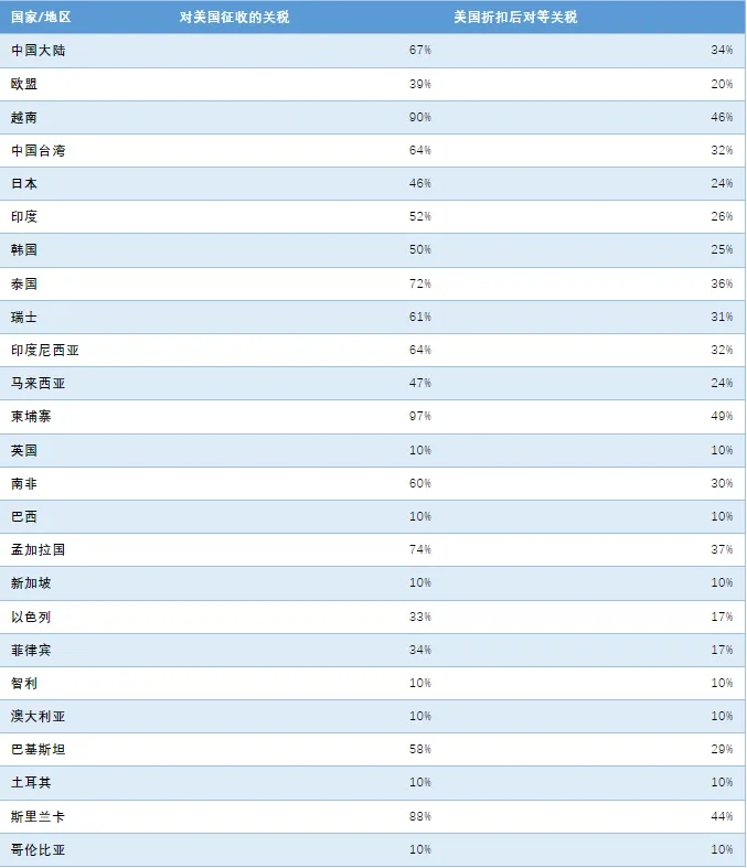 此外,台湾、日本、印度、韩国等主要贸易伙伴的税率为32%、24%、26%以及25%。