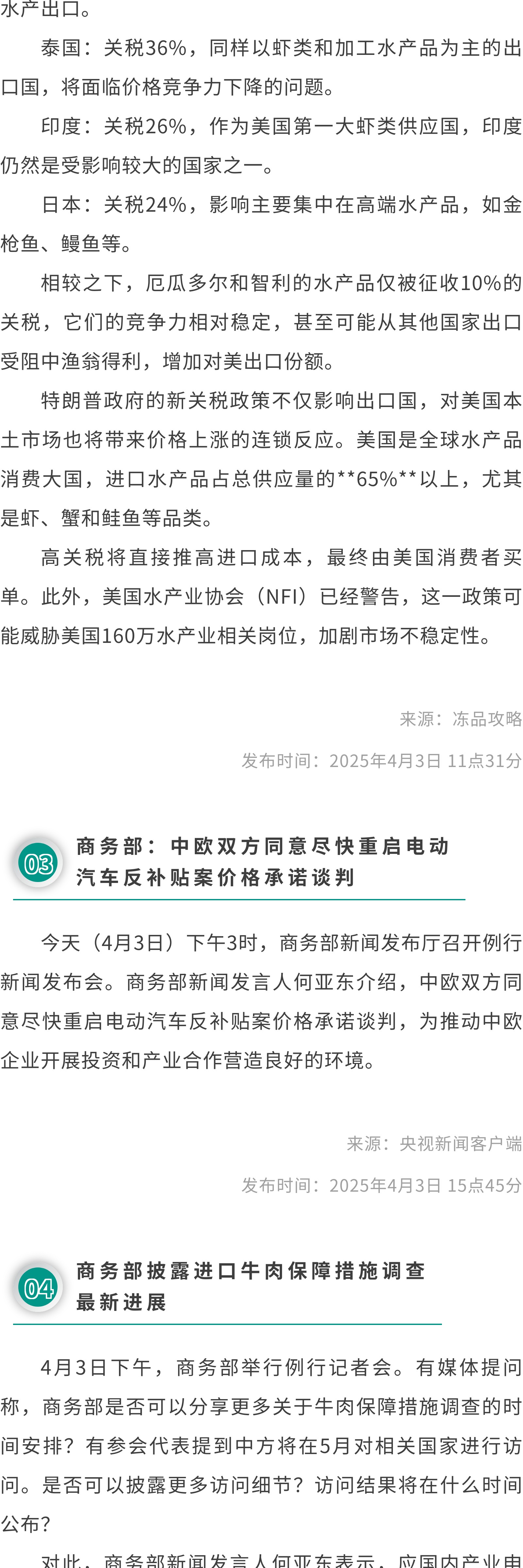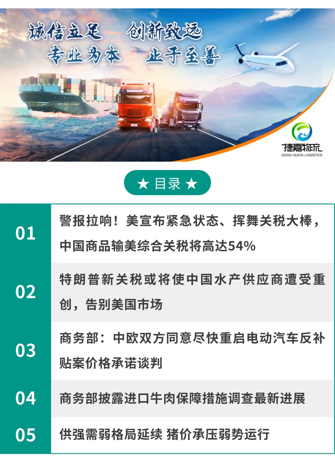 捷嘉 ·关注 | ①警报拉响!中国商品输美综合关税将高达54%②商务部披露进口牛肉保障措施调查最新进展