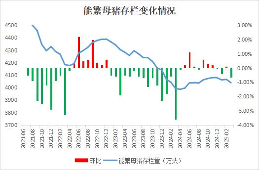 一季度行业利润相对可观叠加疫病相对平稳,养殖端主动去化产能意愿较弱,能繁母猪产能仍超出正常保有量。从生产周期推算,商品猪出栏已进入恢复期,加之母猪生产性能大幅提升及仔猪成活率提高,猪源供应将呈现逐月递增态势。农业农村部公布的数据显示,2025年1季度末能繁母猪存栏量为4039万头,环比下滑1.0%,同比增加1.2%,达到正常保有量的103.6%。
