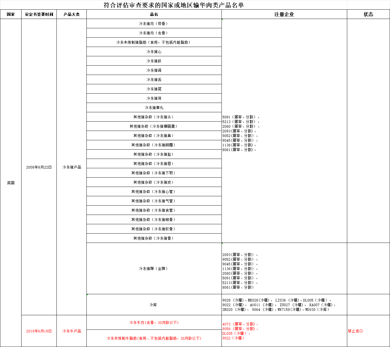 新增英国1家冷库(注册编号为:WD030)自2025年4月25日及之后生产/贮存的符合中国要求的肉类产品输华。