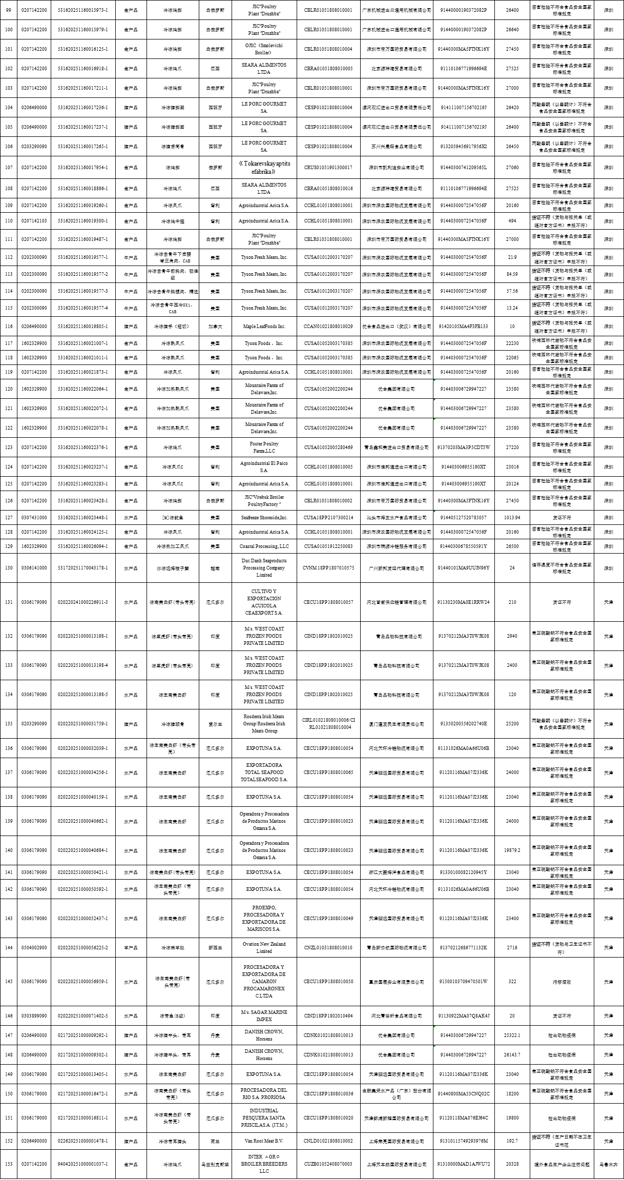 小捷特将未准入境的猪、牛、羊、禽、水产品筛选出来,以便大家查看~其中猪产品40票;牛产品24票;羊产品1票;禽产品43票;水产品45票。