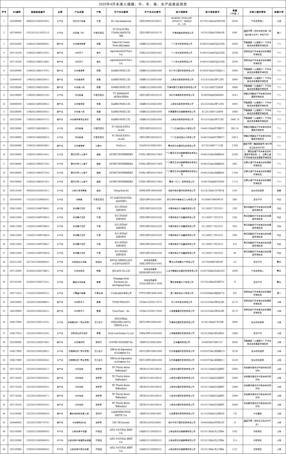 捷嘉 ·关注 | ①2025年4月猪牛羊禽水产未准入境产品共计153票②海关发布第93-95号公告