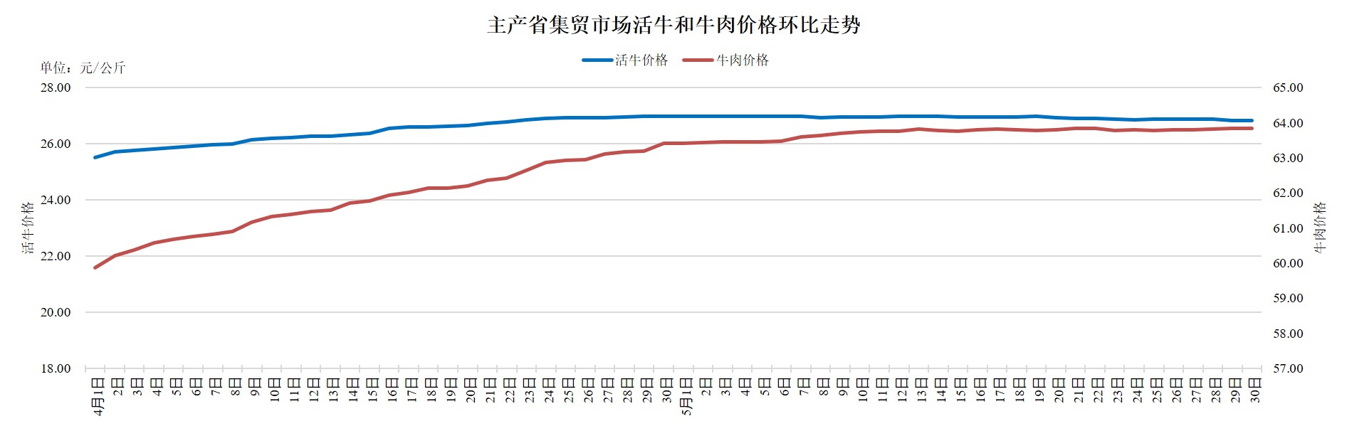 5月30日主产省集贸市场活牛和牛肉价格环比持平