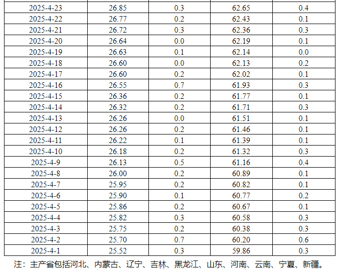 4月份全球奶制品价格指数上涨。具体来看,2023年10月份开始震荡回升,2025年4月份为152.14,环比涨2.3%,同比涨22.9%。4月份全球全脂奶粉批发价格4526美元/吨,环比涨1.9%,同比涨13.9%。其中,美国全脂奶粉批发价格连续7个月下跌,为4501美元/吨,环比跌0.6%,同比跌5.7%;大洋洲全脂奶粉批发价格上涨,为4142美元/吨,环比跌3.7%,同比涨27.7%;欧盟全脂奶粉批发价格连续3个月上涨,为4904美元/吨,环比涨2.8%,同比涨26.4%。按同期人民币汇率折算,4月份全球全脂奶粉批发价格32926元/吨。其中,美国、大洋洲和欧盟分别为32821元/吨、30198元/吨和34579元/吨。