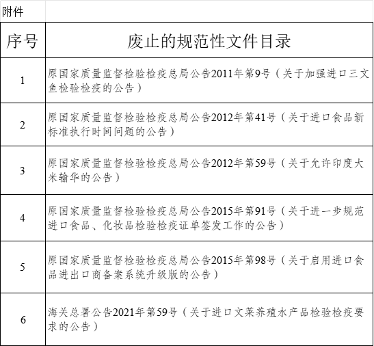 (关于废止部分进口食品类规范性文件的公告)