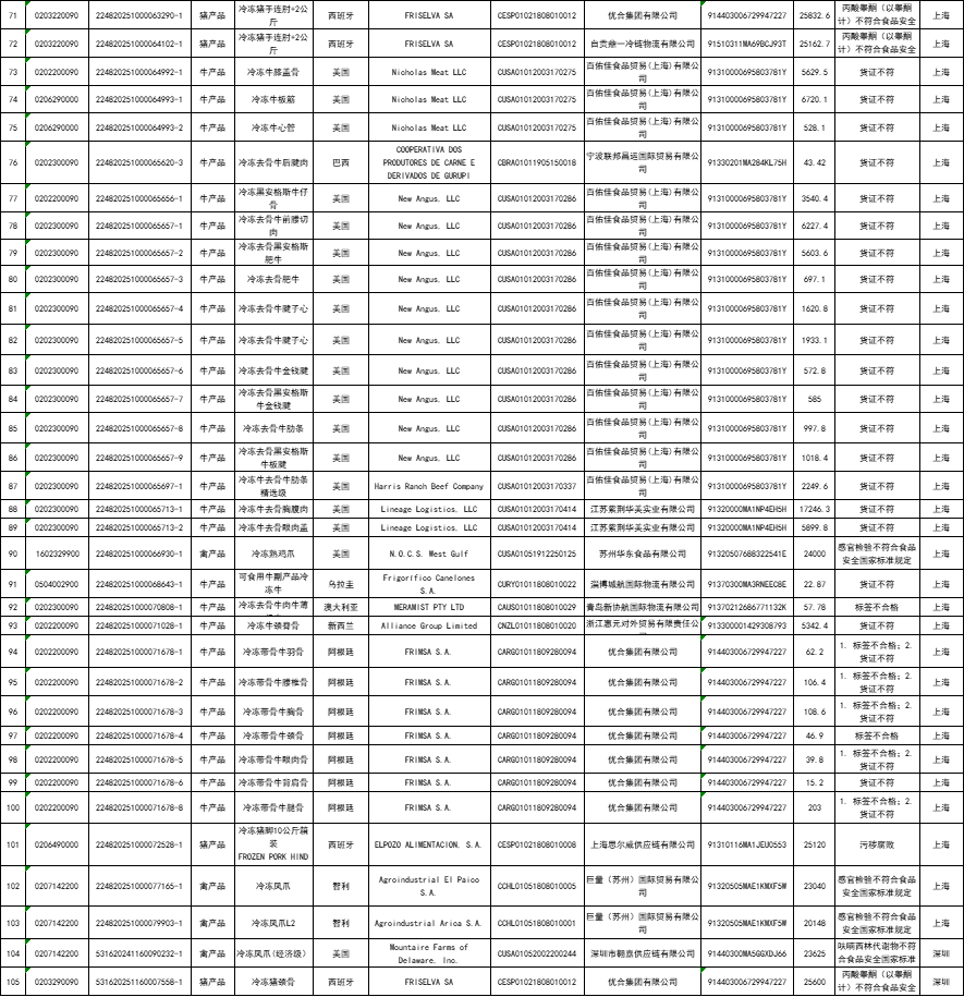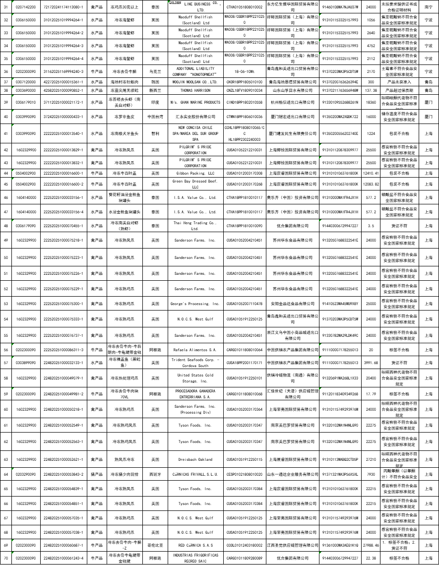 小捷特将未准入境的猪、牛、羊、禽、水产品筛选出来,以便大家查看~其中猪产品8票;牛产品45票;禽产品50票;水产品73票。